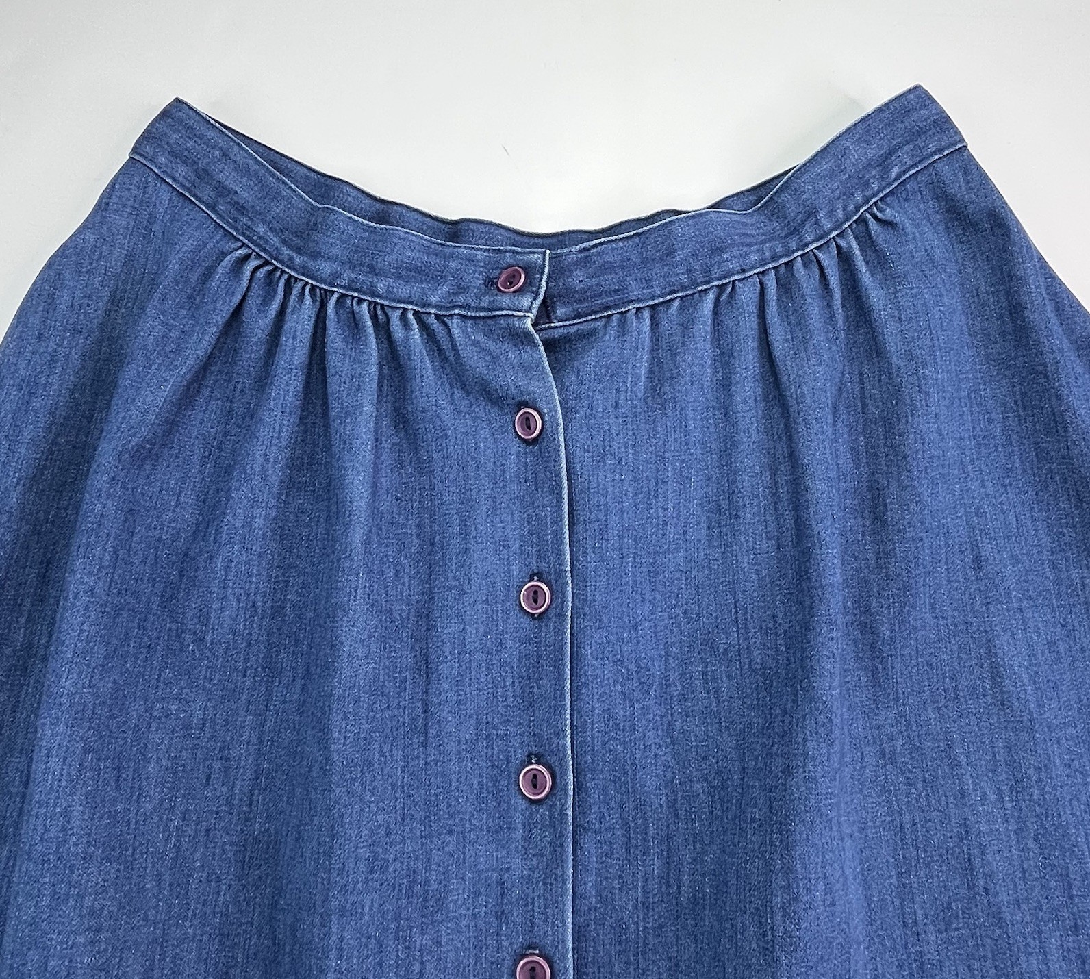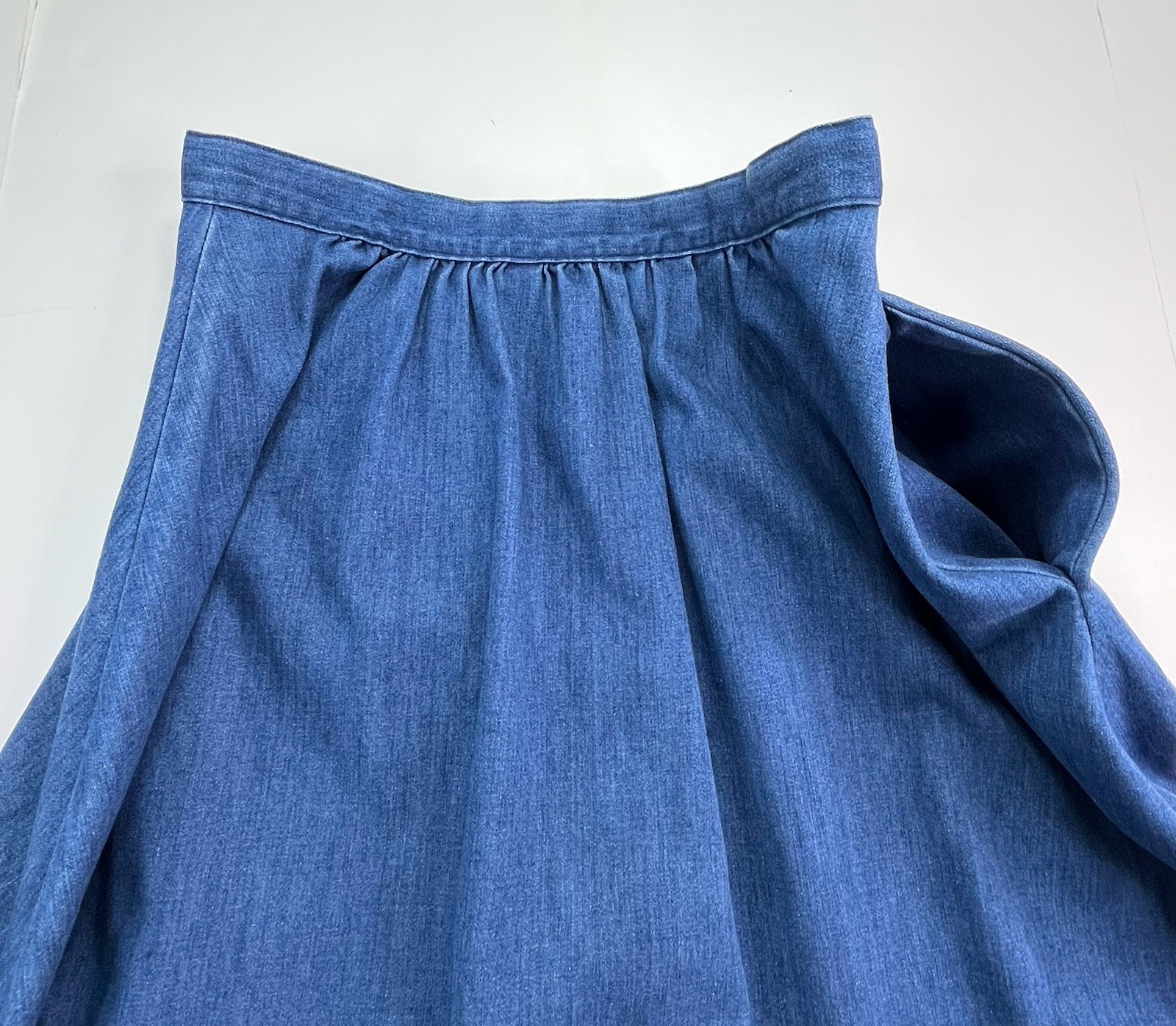 Vtg Denim Skirt S/M Button Front Ruffle Midi Boho Prairie Peasant Cottagecore