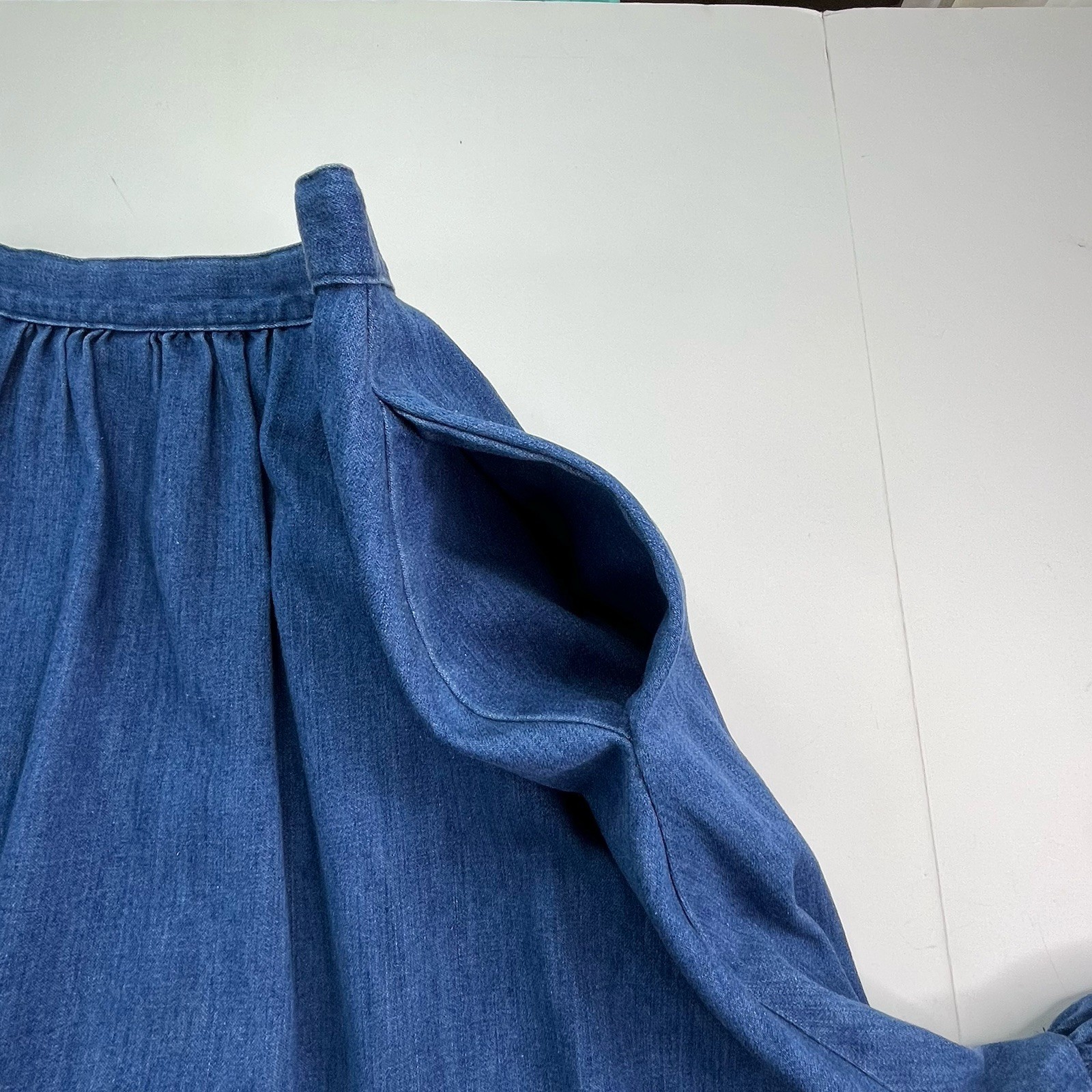 как выглядит Vtg Denim Skirt S/M Button Front Ruffle Midi Boho Prairie Peasant Cottagecore фото