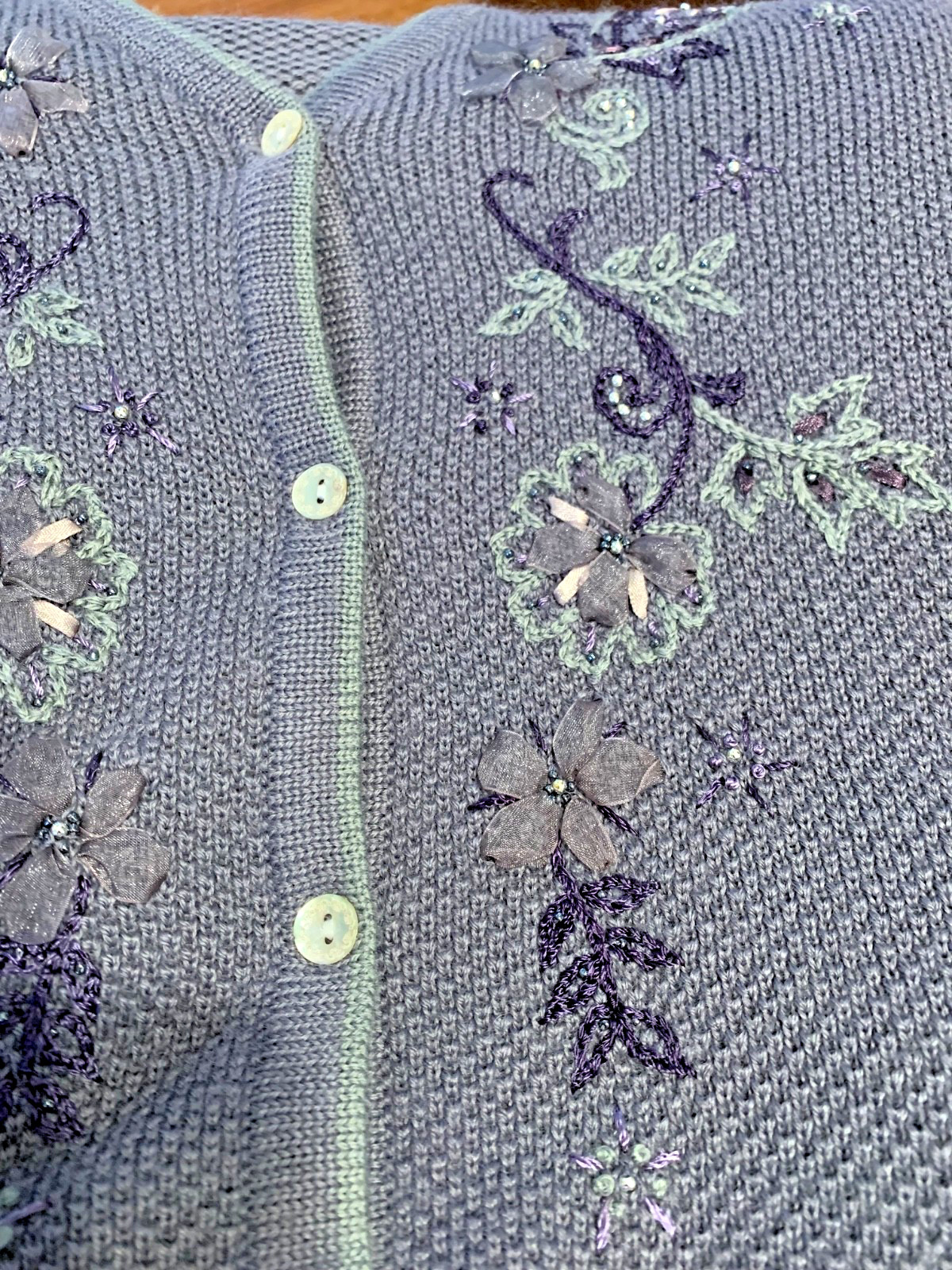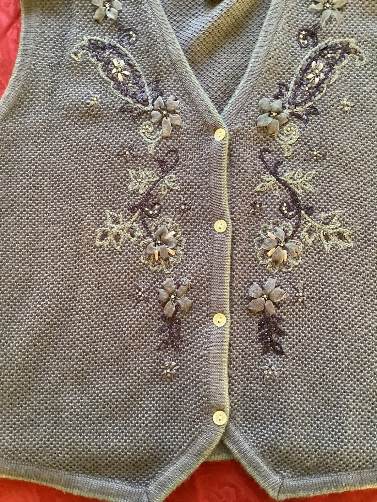 как выглядит VTG KORET PETITES LARGE Women Grey Vest Bead Embroidered Floral 4 Etched Buttons фото