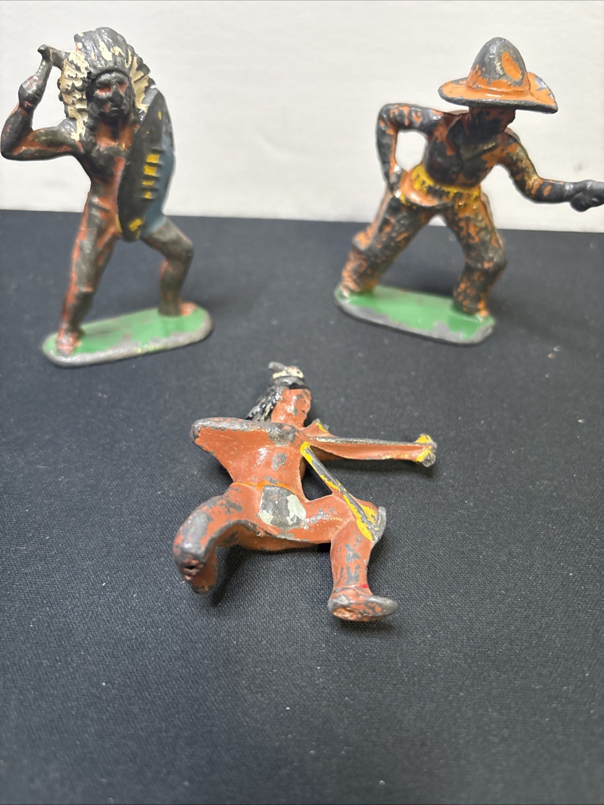 Vtg Manoil Barclay Lead Toy Native American Indian And Cowboy Lot