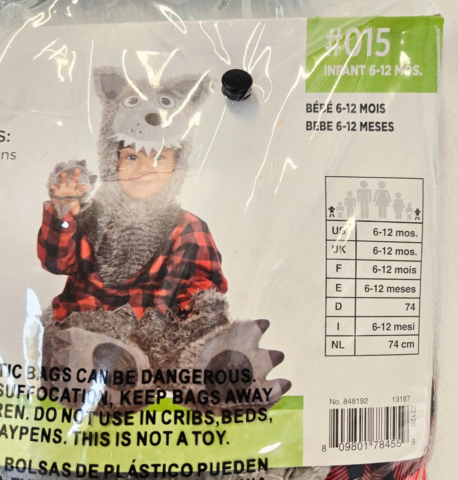 как выглядит Baby Wolf Halloween Costume Infant Size 6-12M Cosplay Unisex Hood Jumpsuit Boot фото