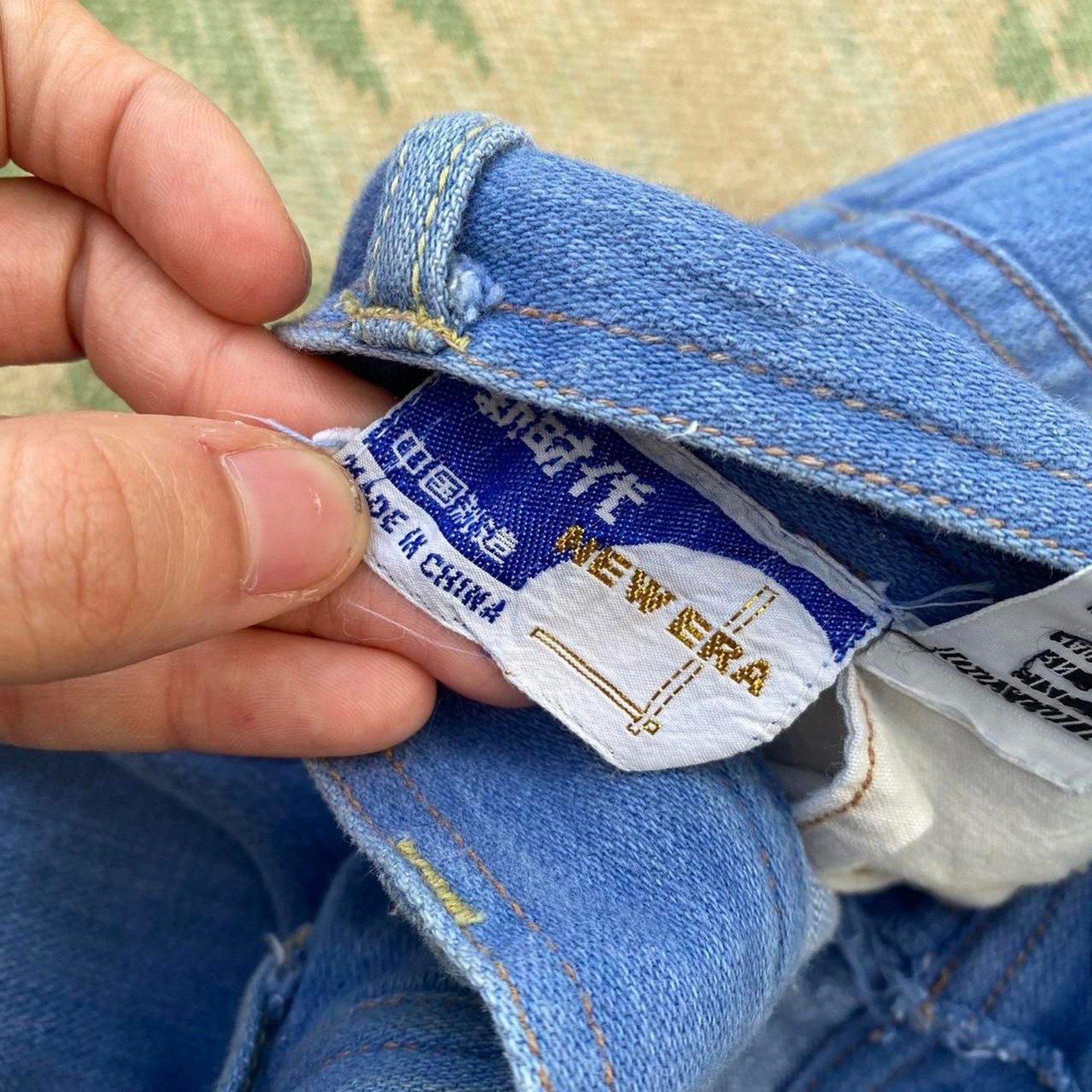 1970s retro saddle back light wash denim flared bell bottom jeans