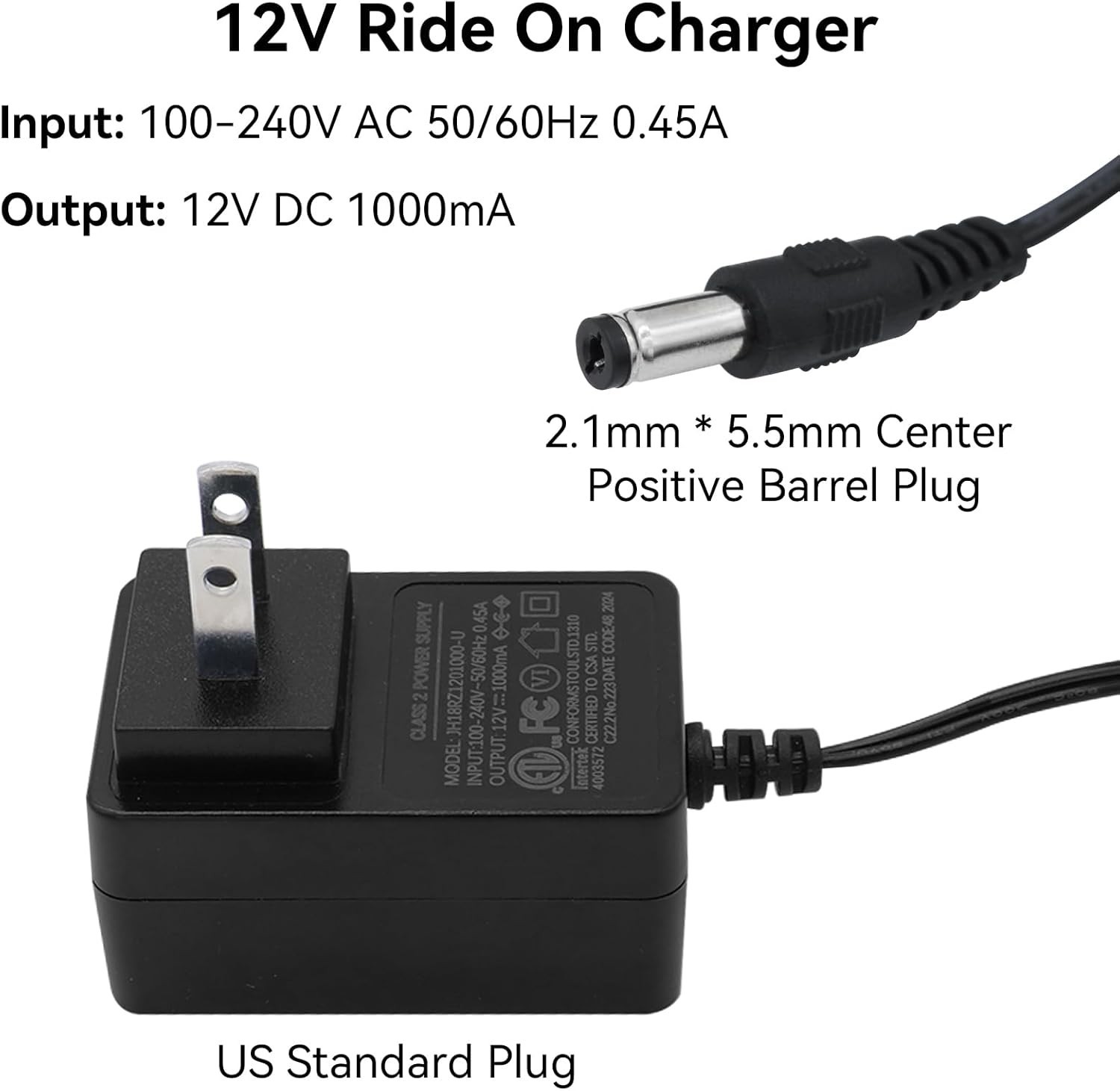 Universal 12V Kids Ride-On Car Battery Charger - Safe, Compatible, and Certified