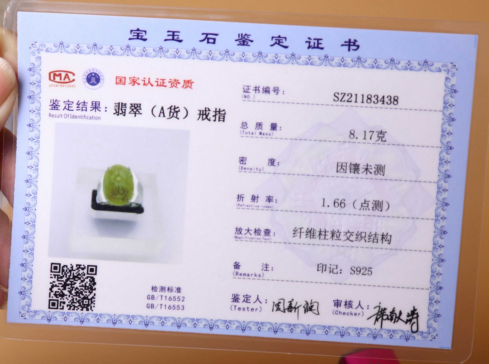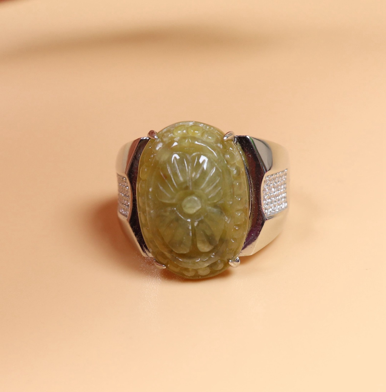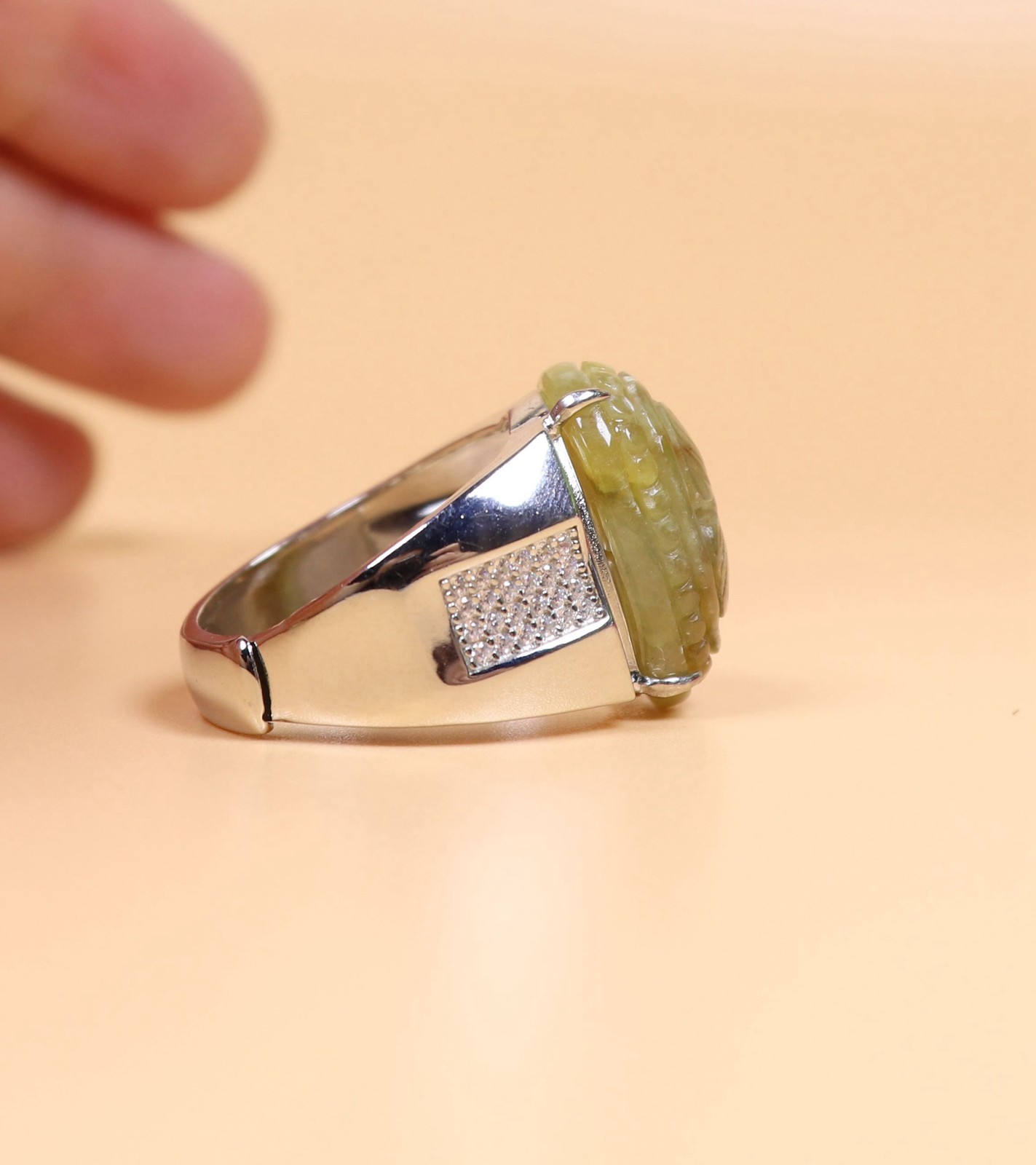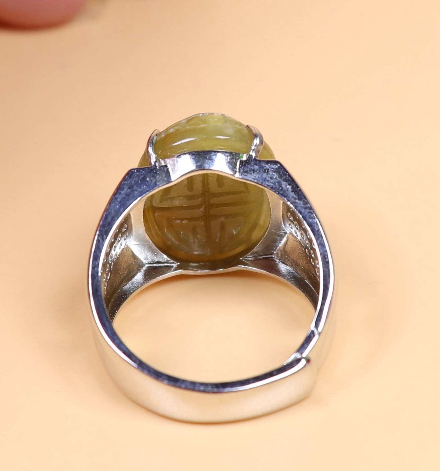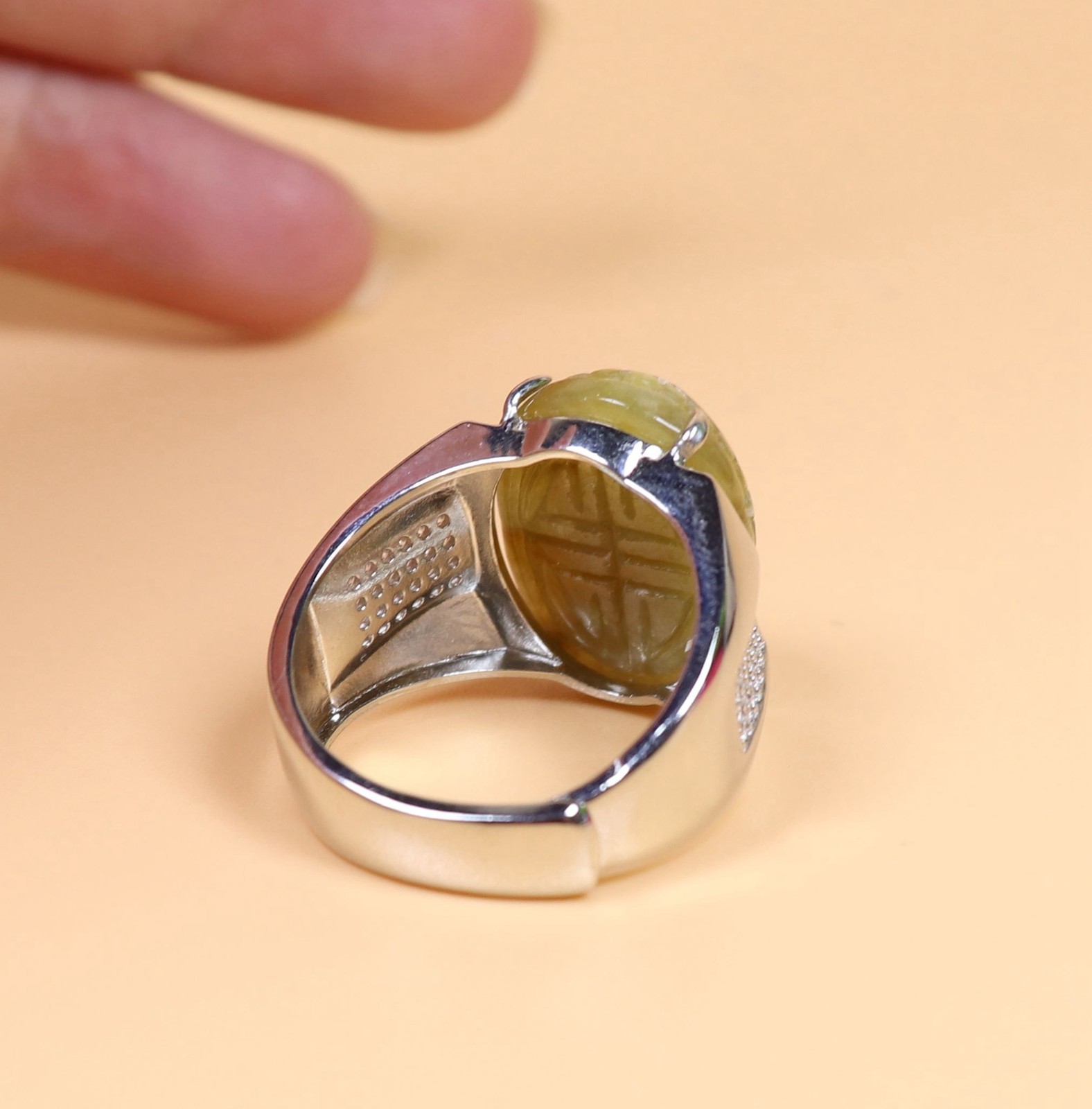 как выглядит 925 Silver Certified Green Natural A Jadeite Moire ring Adjustable Diameter 2603 фото