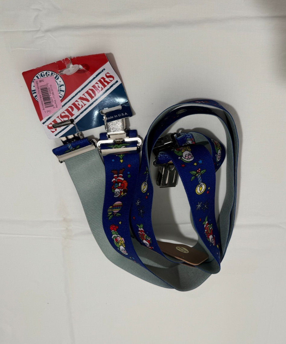NWT Yankee Forge Christmas Suspenders 48 Blue 2 Wide Santa Tree Angel