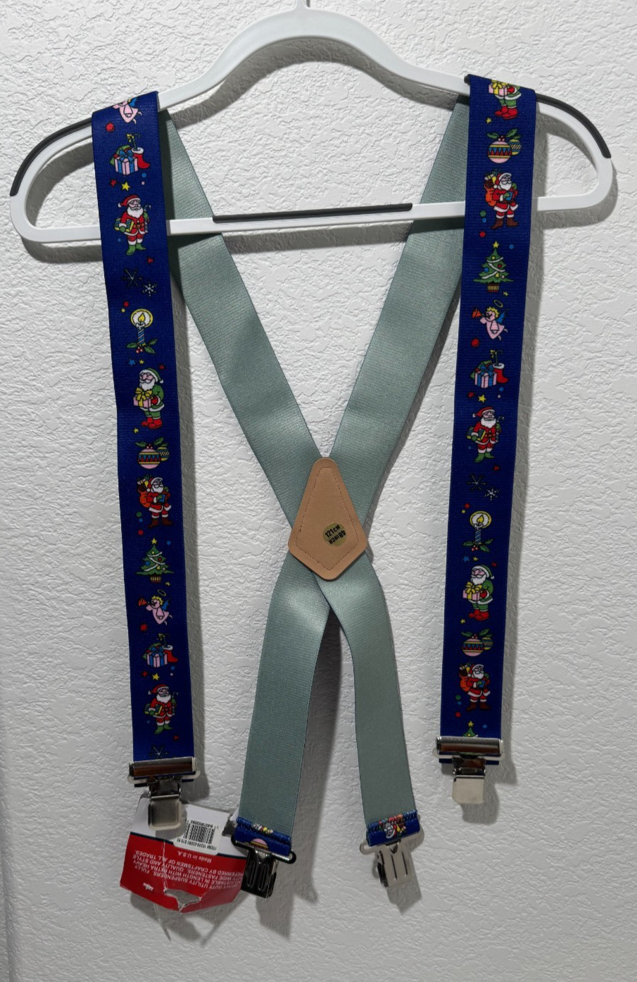 как выглядит NWT Yankee Forge Christmas Suspenders 48 Blue 2 Wide Santa Tree Angel фото