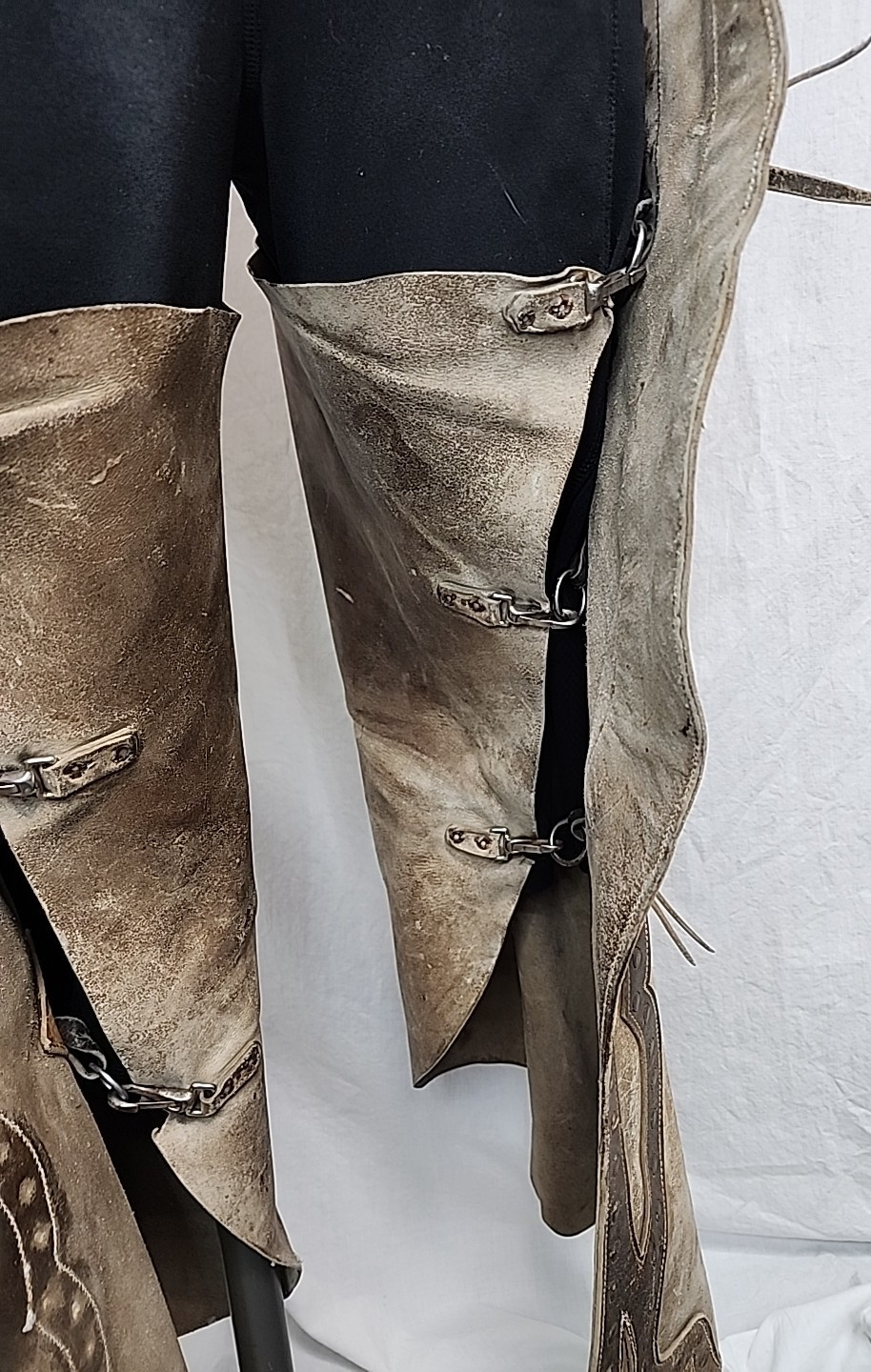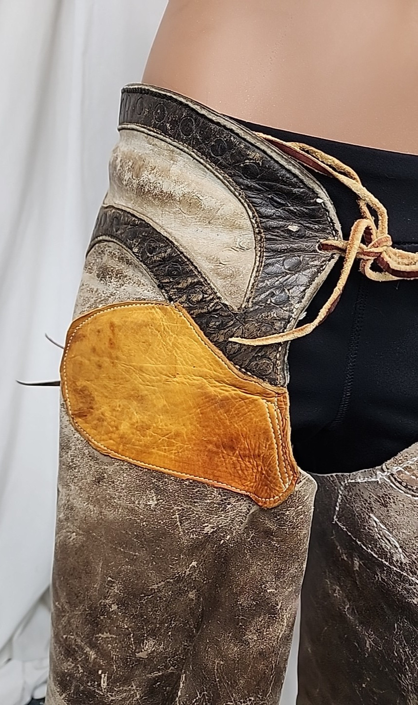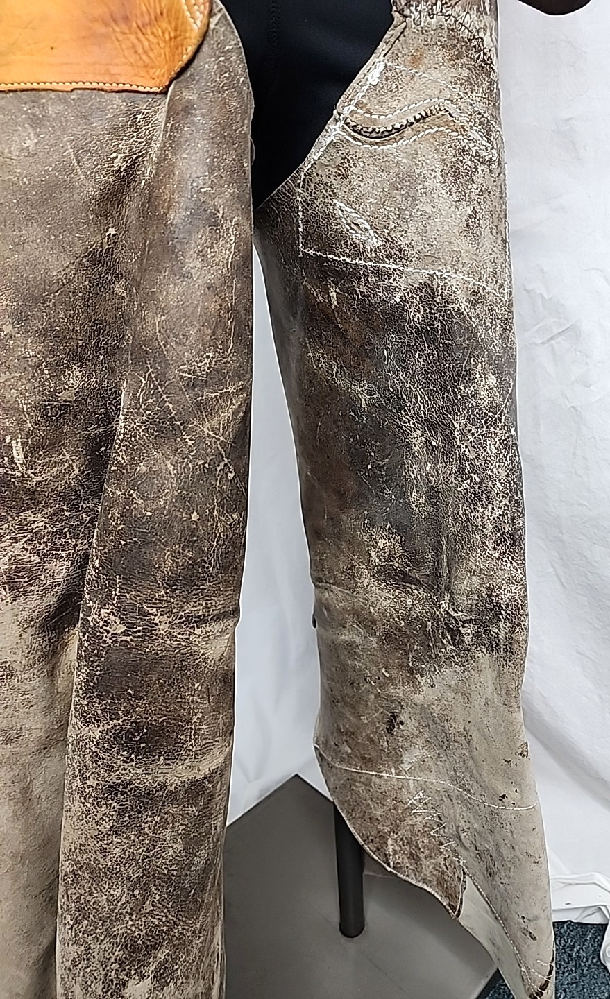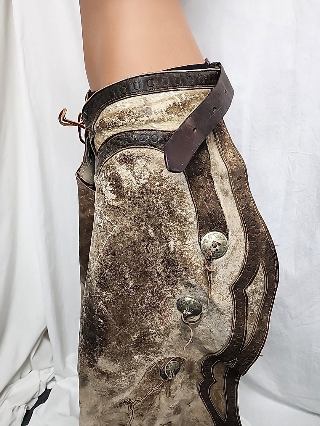 Vintage Thick Heavy Leather Rodeo Western Chaps Well Worn Repaired Antique