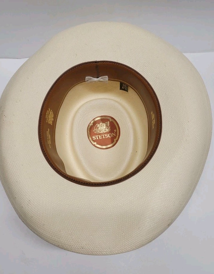 как выглядит Stetson Royal Flush Straw Shantung Panama Hat Vintage Made In USA, 6 7/8 фото