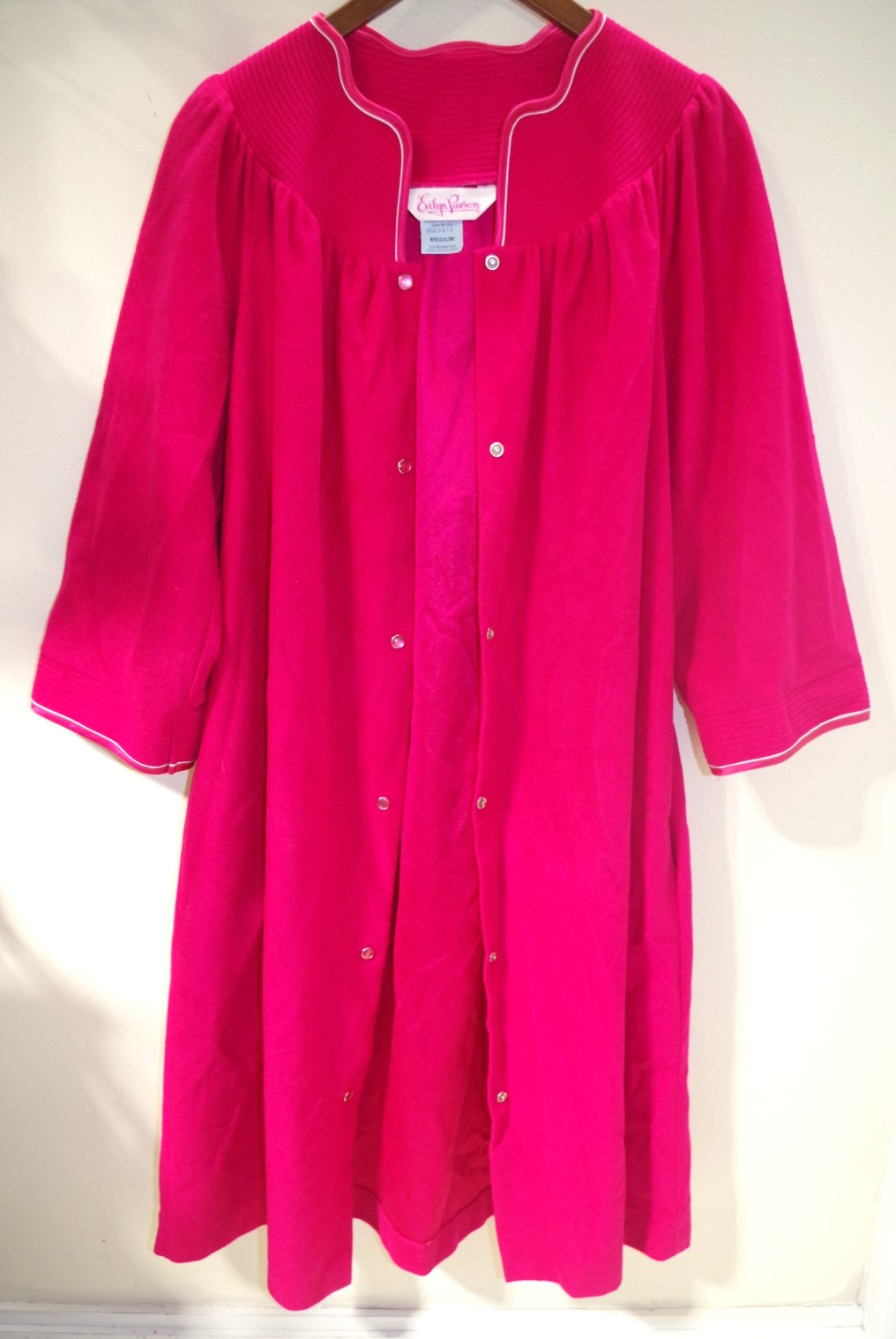 Y1 True Vintage Evelyn Pearson House Dress Coat Fuchsia Fleece Robe M USA Made