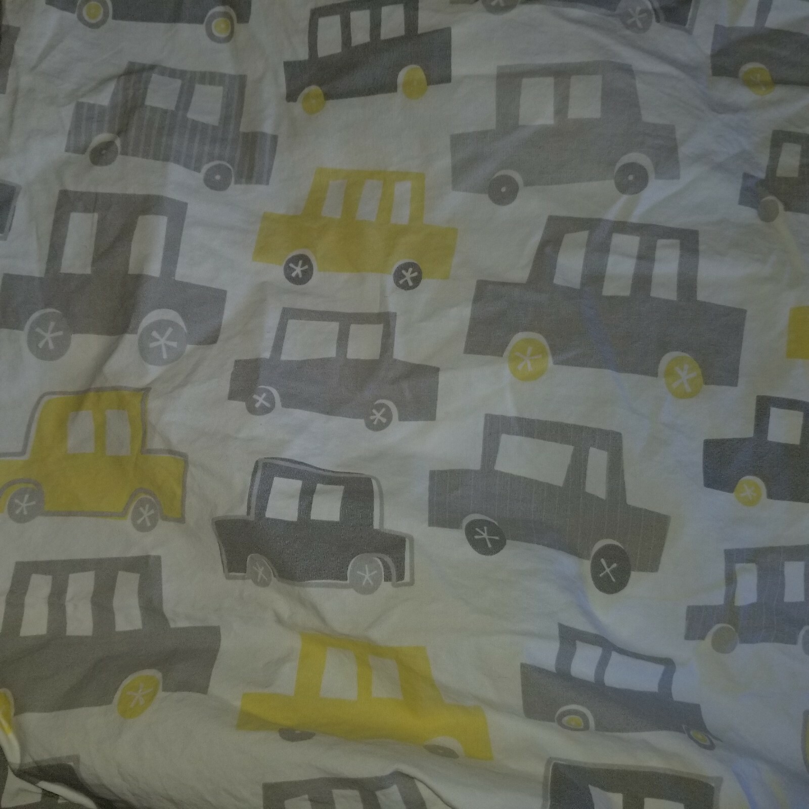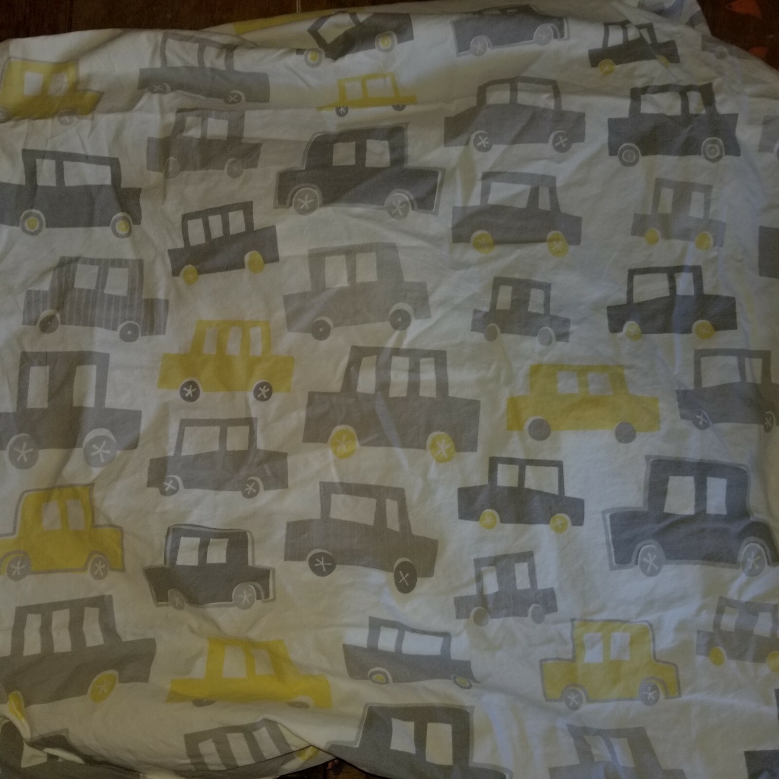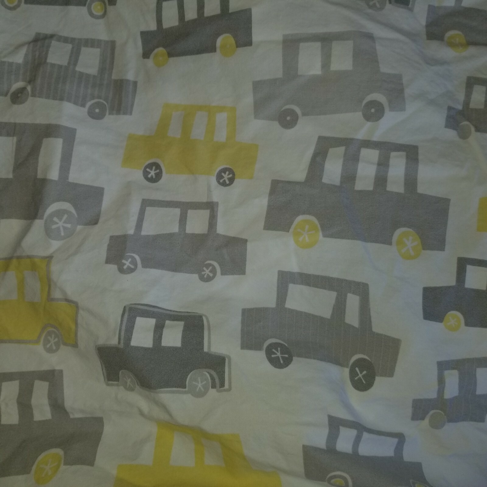 Pottery Barn Kids Gray/Yellow Cars Crib Fitted Sheet