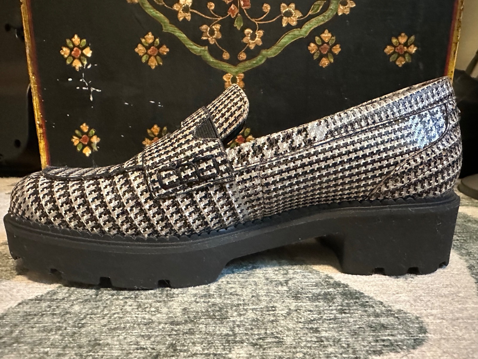 Vionic Fillmore womens black and white houndstooth loafers. Very comfortable