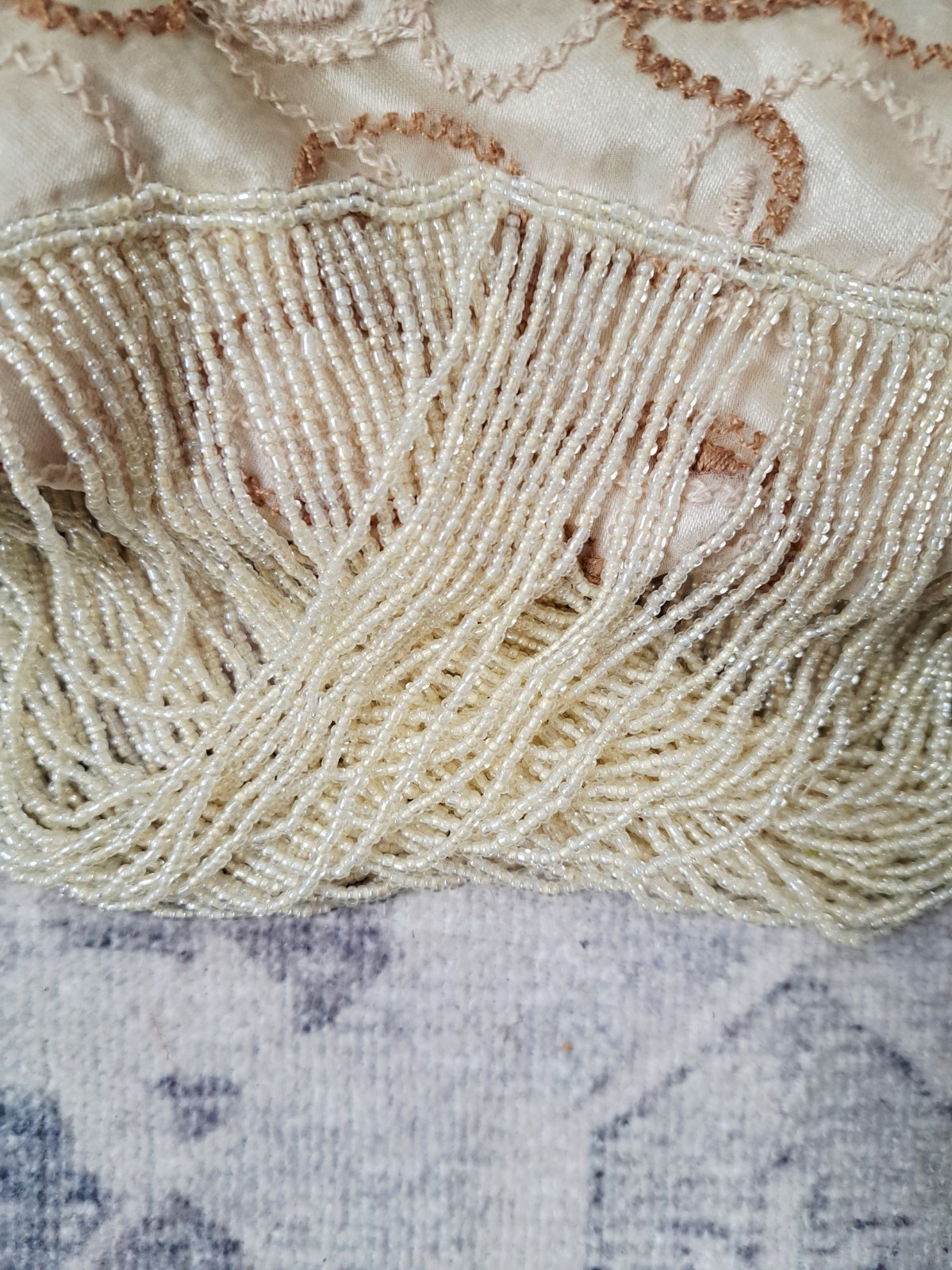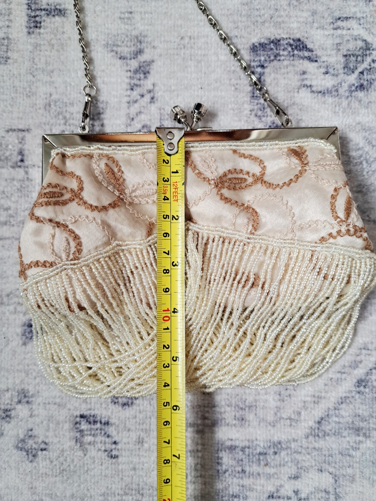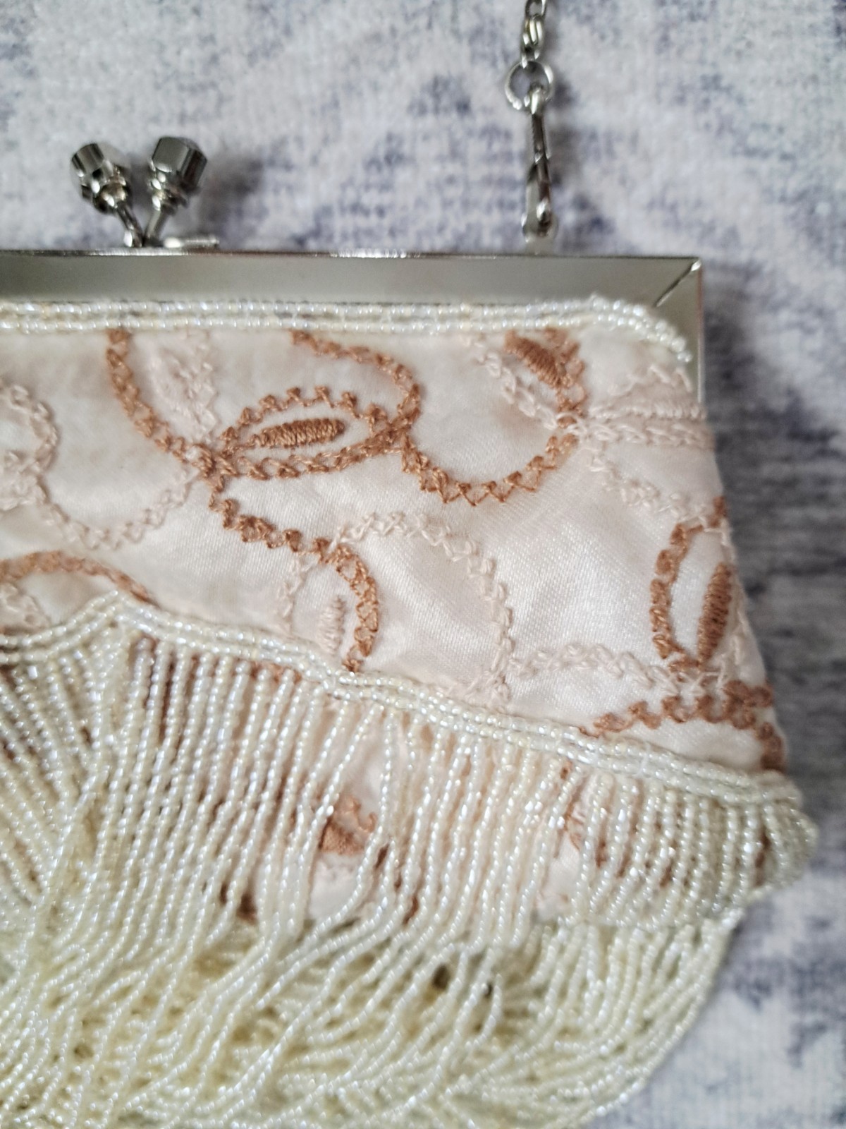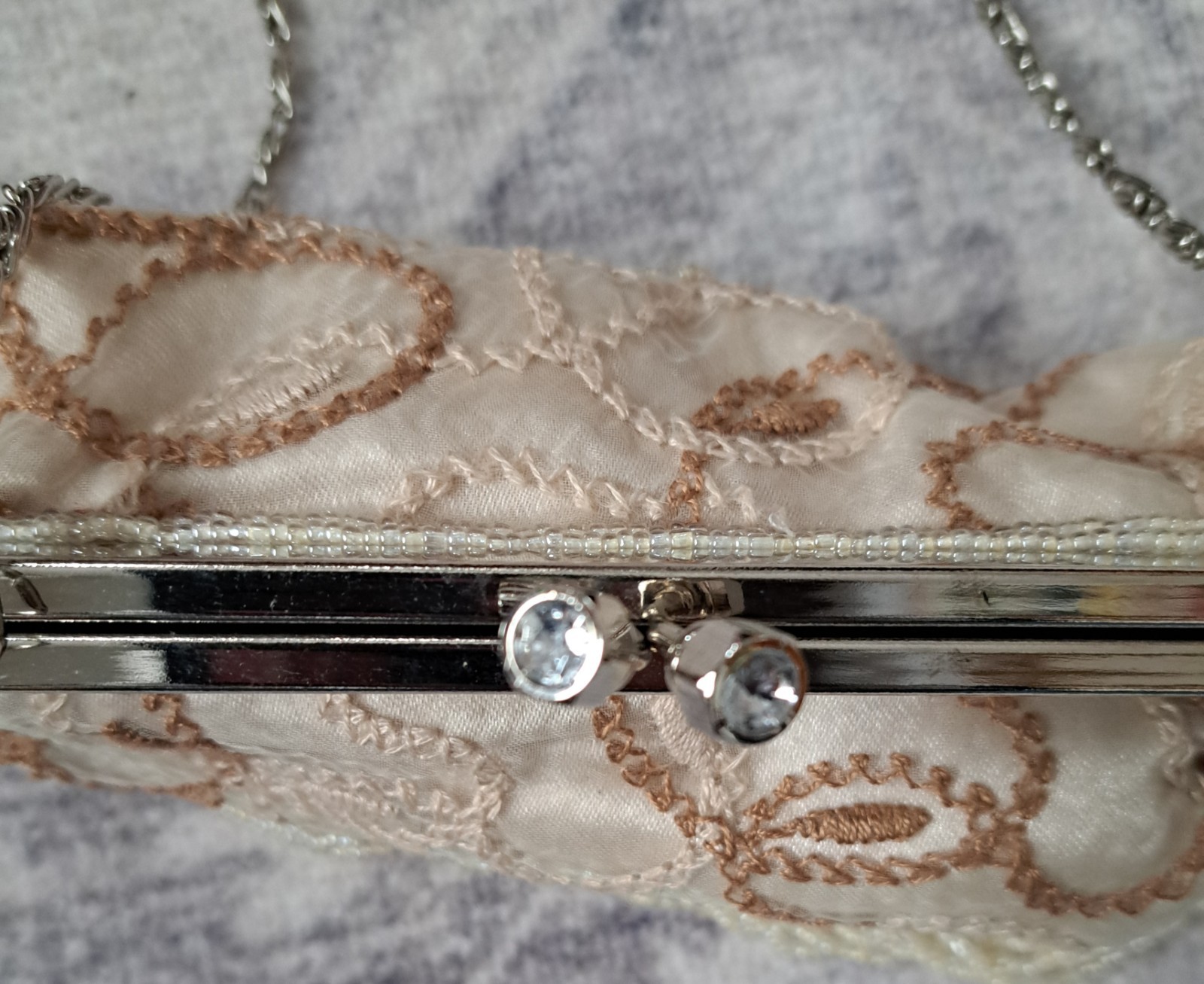 как выглядит Vintage Style Ivory Beaded Evening Clutch Bag With Snap Closure And Chain Strap. фото