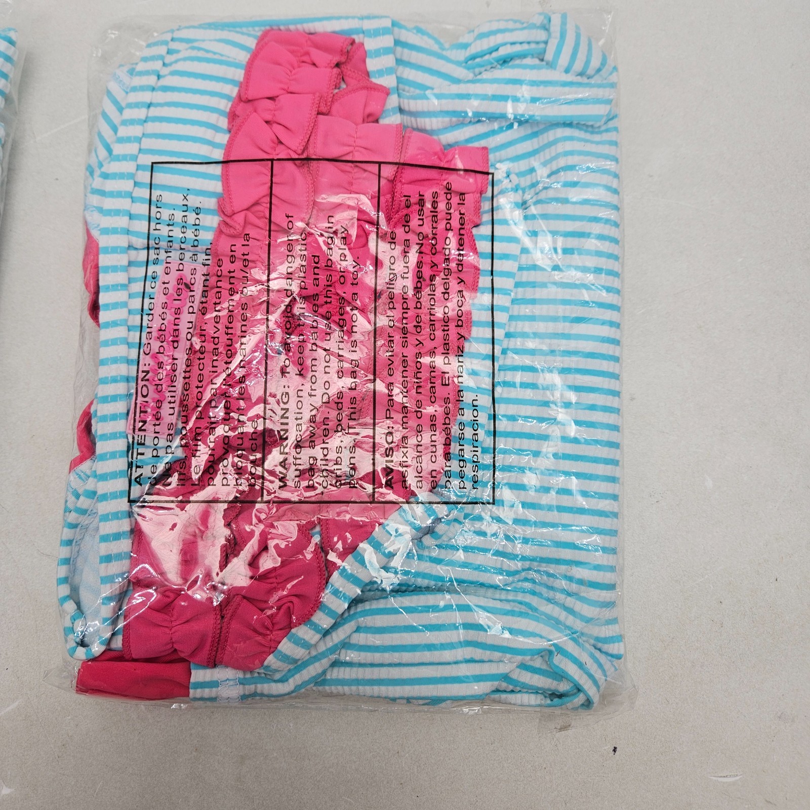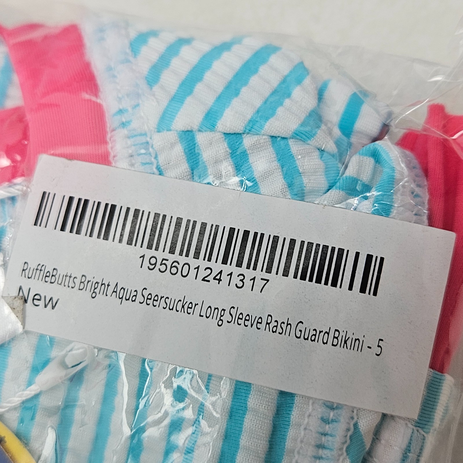Ruffle Butts Girl Seersucker L/S Rash Guard Bikini Bright Aqua/Pink 5T 38-45 lb