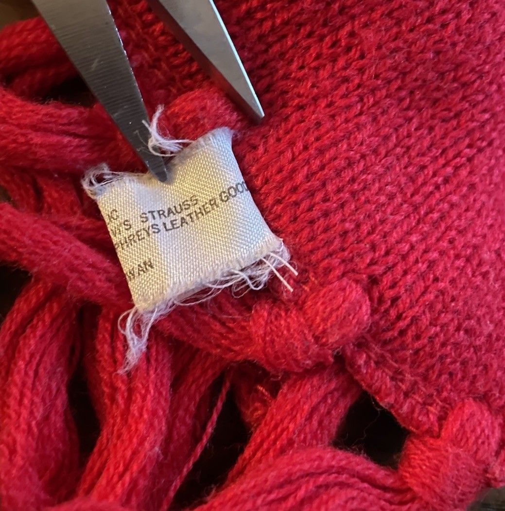 как выглядит Vintage 80s LEVI S Strauss Acrylic Fringe Scarf RED Winter Wear Humphreys Goods фото