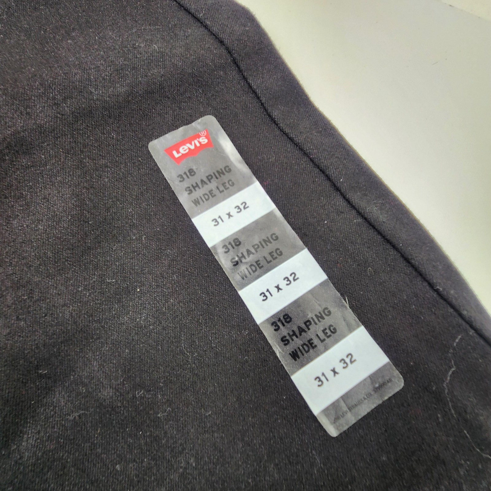как выглядит Levis 318 Shaping Wide Leg Jeans Womens 31x32 Black Stellar Stretch Denim Pants фото