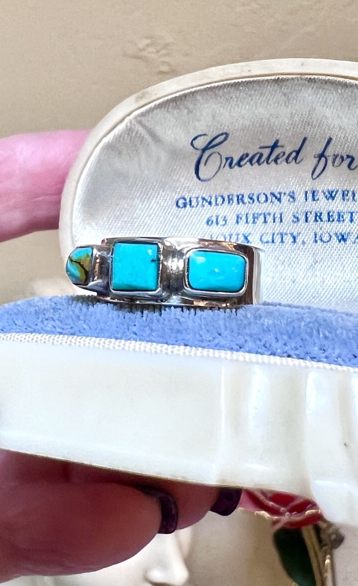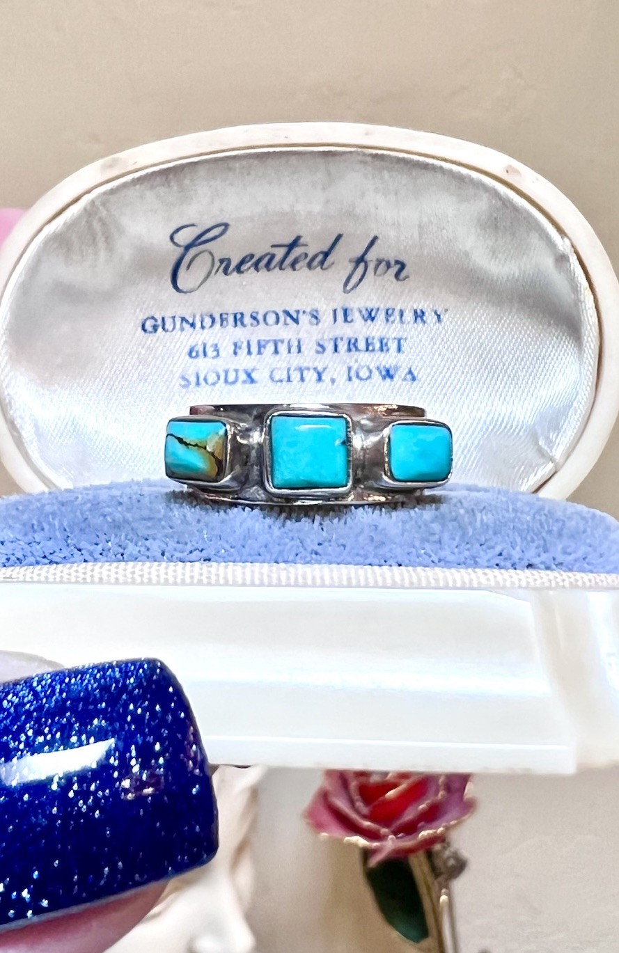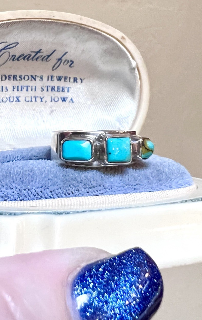 как выглядит LOVELY Vintage Artisan Sterling Silver Genuine Turquoise 3-Stone Band Ring фото