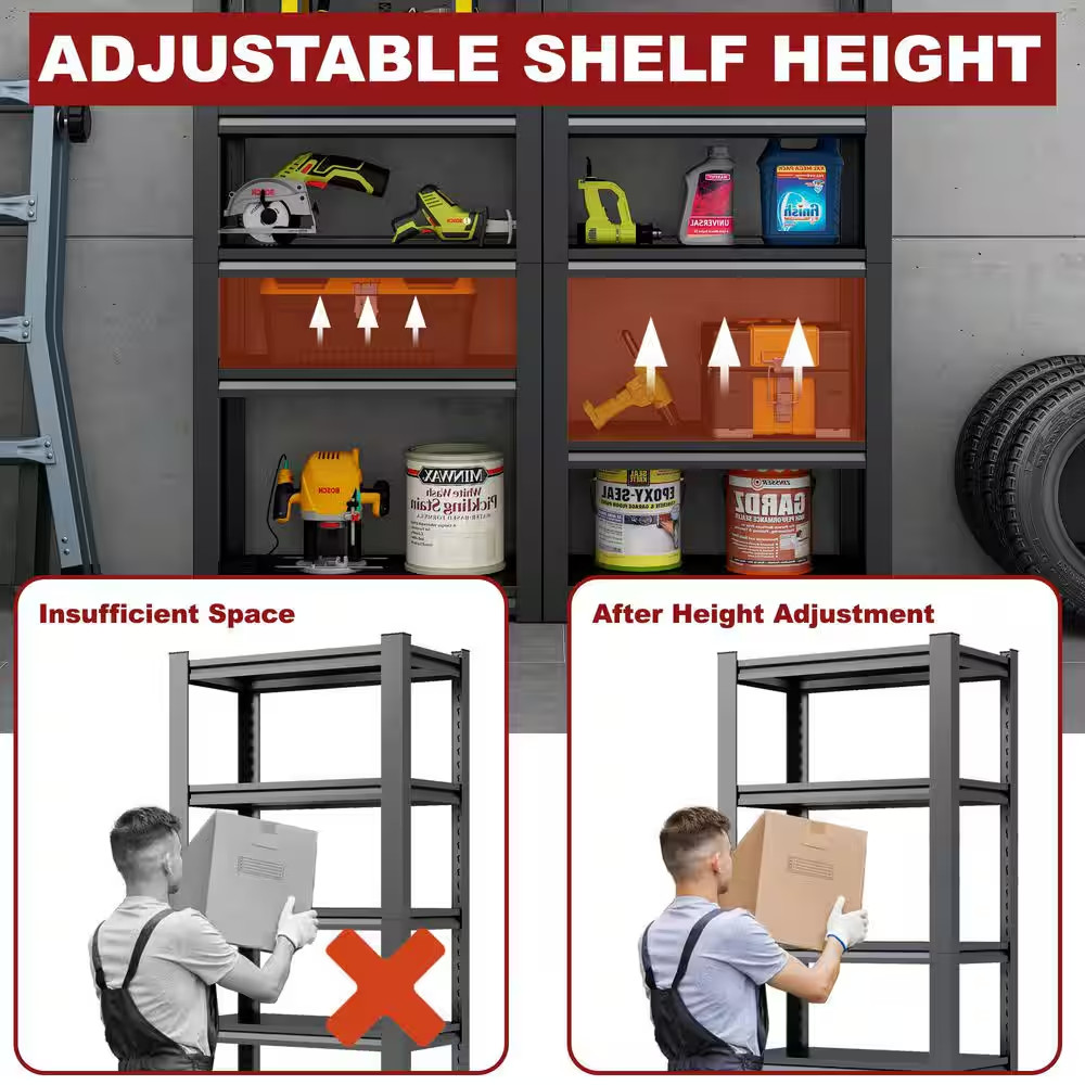 как выглядит 5-Tiers Heavy Duty Metal Adjustable Garage Storage Shelving Unit in Black 31.5 фото