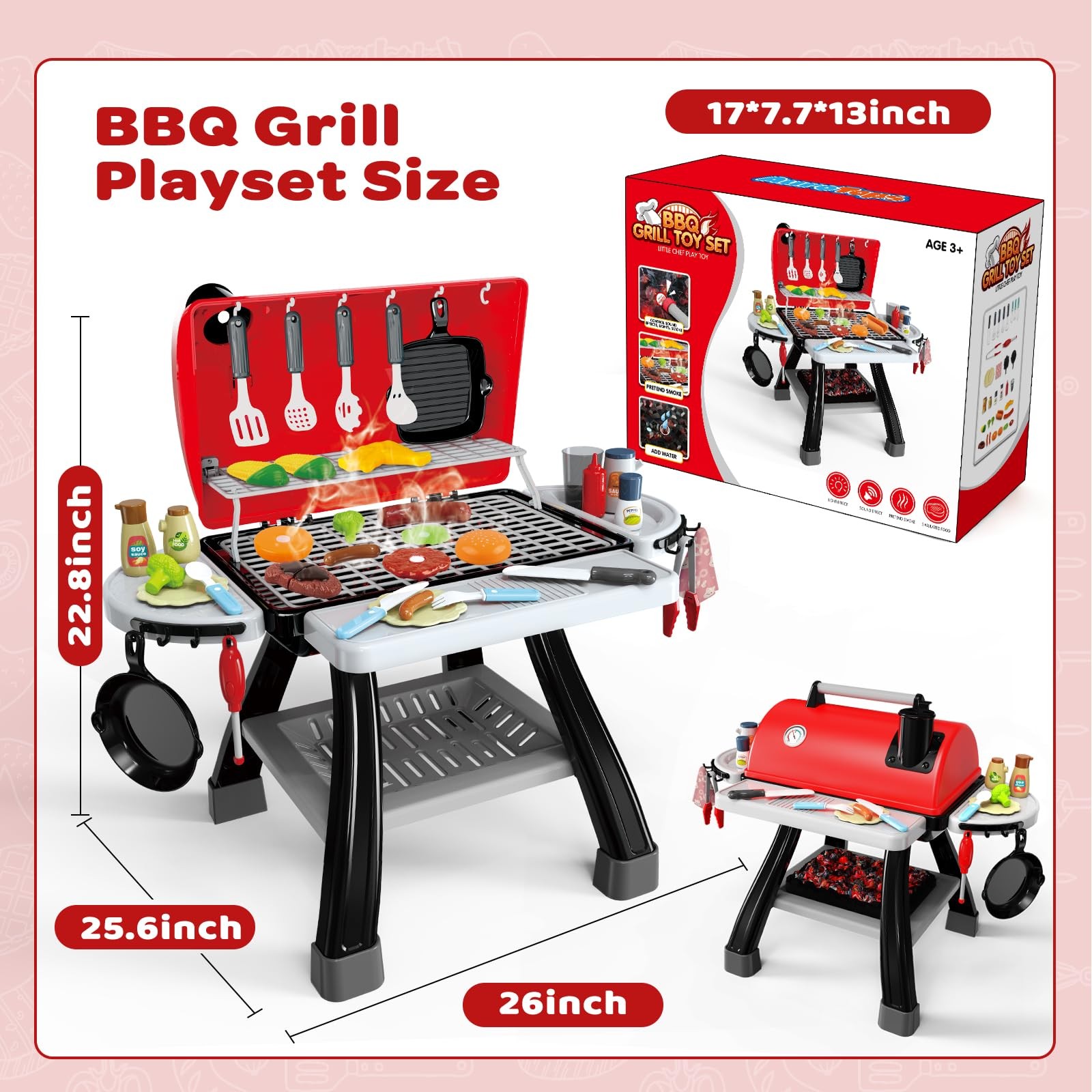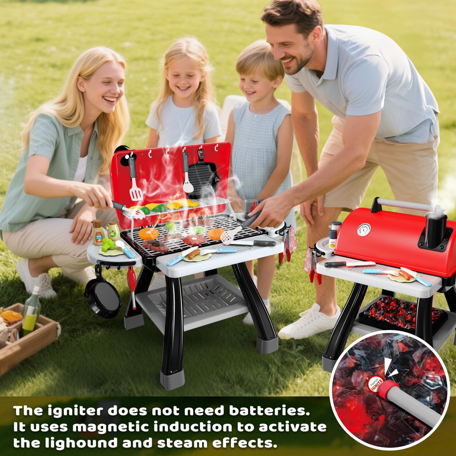 Included Components: 1 Bbq Grill Playset, 1 Charcoal, 1 Lighter, 35Pcs Accessories