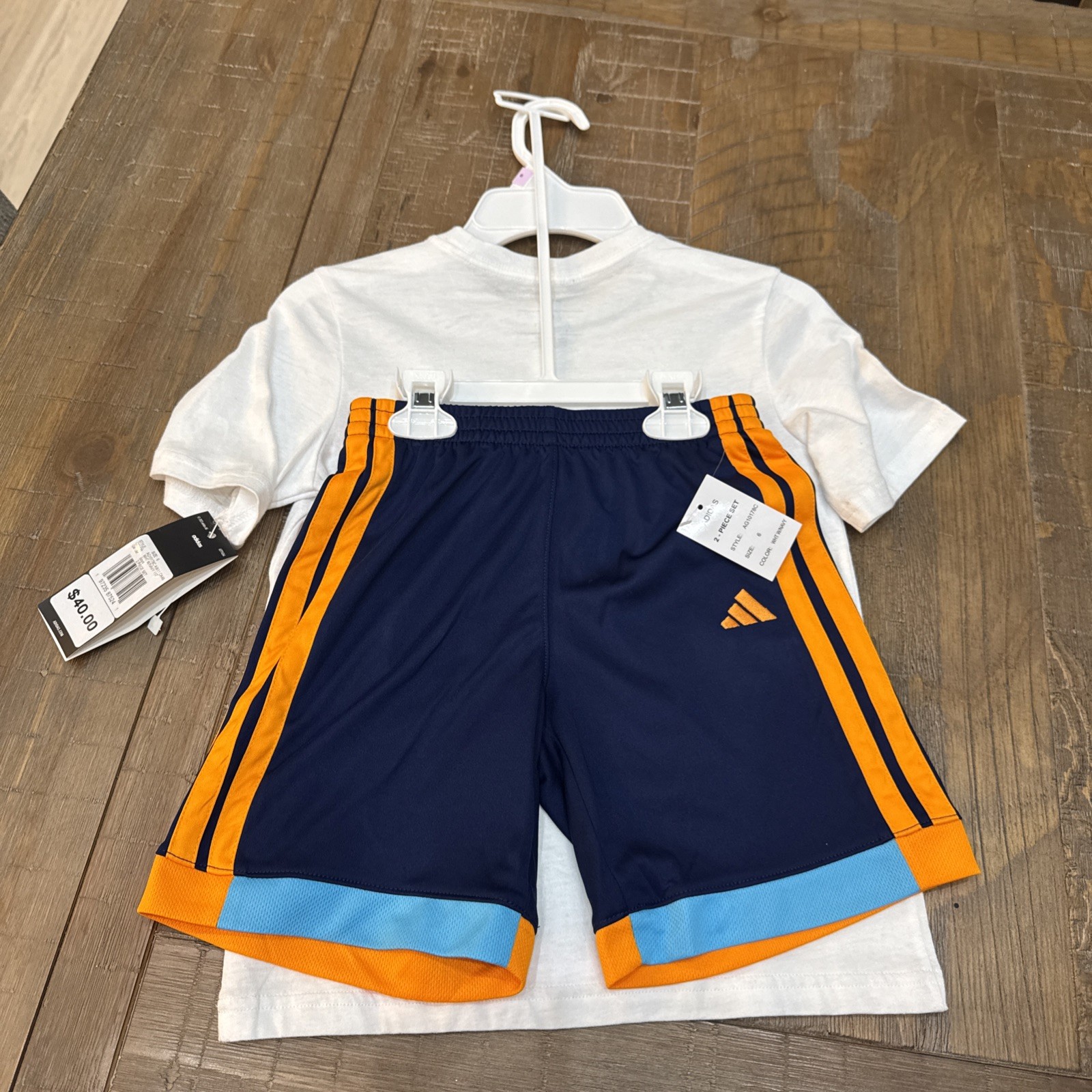 как выглядит Kids Size 6 Adidas 2 Piece Outfit NWT White/Navy/Orange Orig 40.00 фото