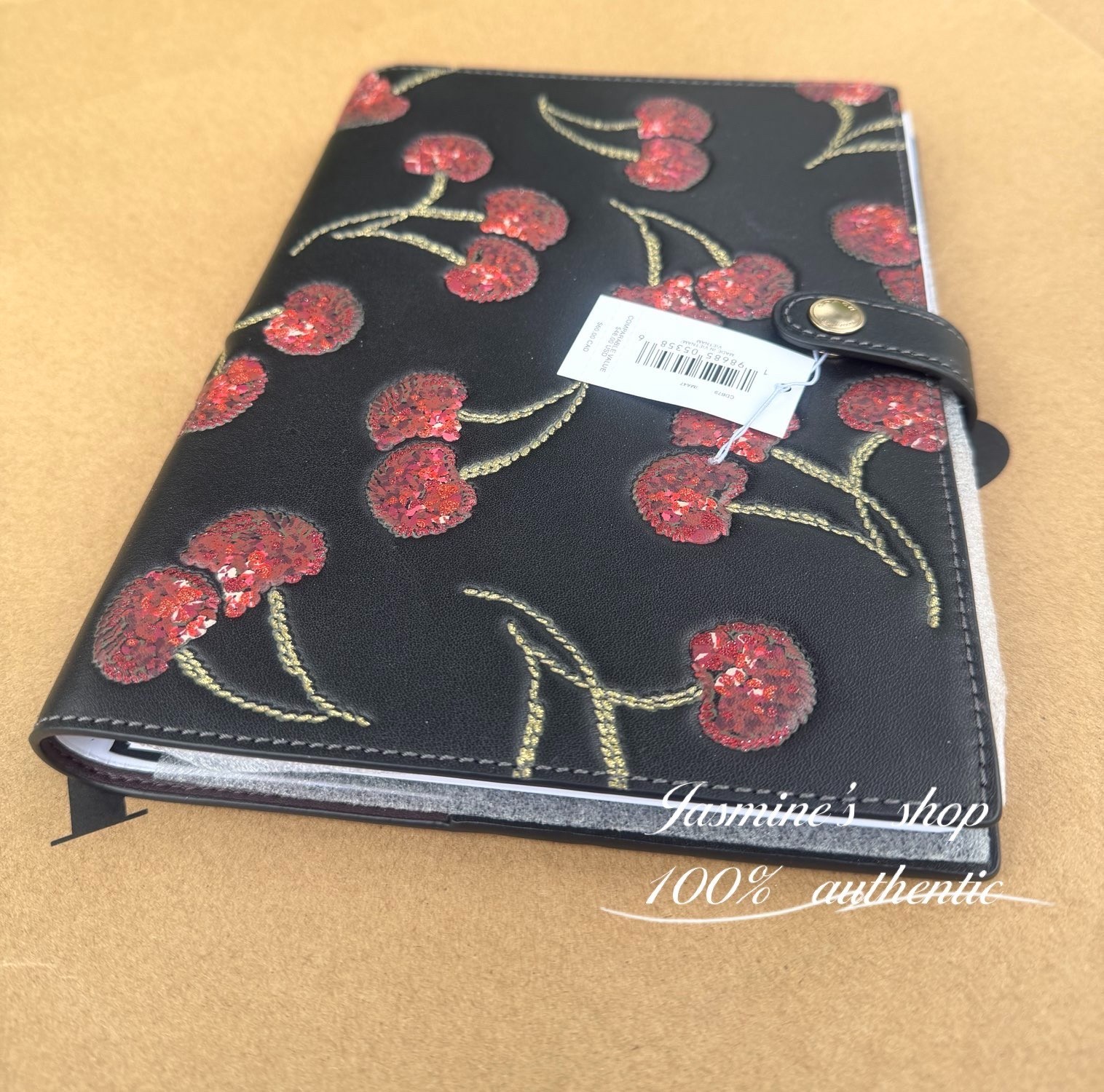NWT Coach Notebook With Black Cherry In Leather/Black Print CDB79