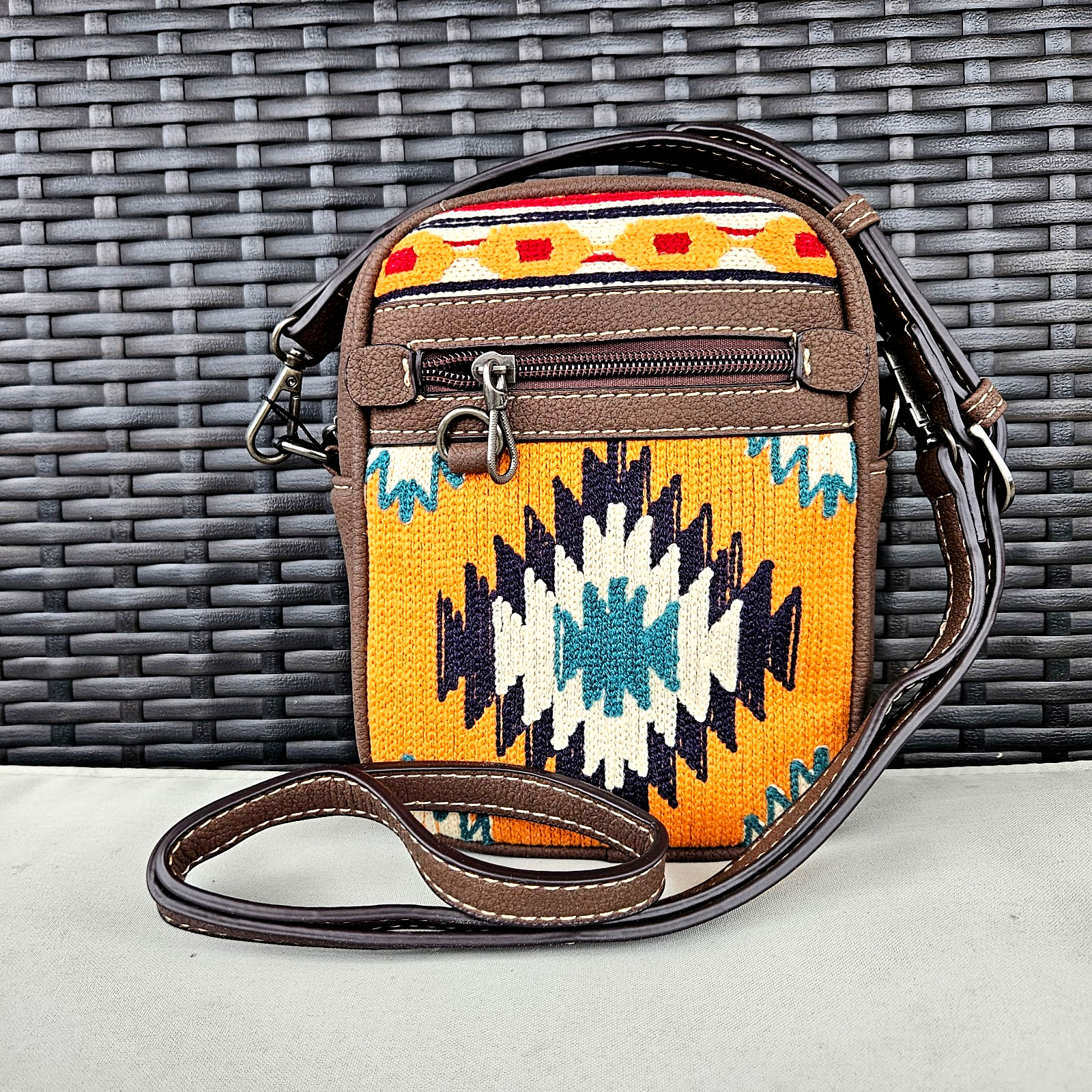 American Bling Aztec Purse Embroidered Western Mini Crossbody Bag Coffee