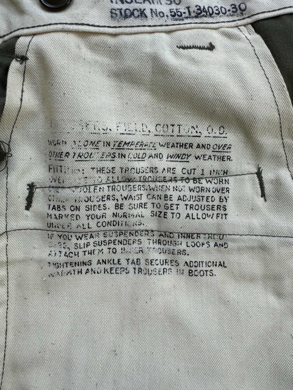 • Deadstock 1940s Vtg US Army M1947 OD Field Cotton Trousers W 30 L 30 Pants NOS