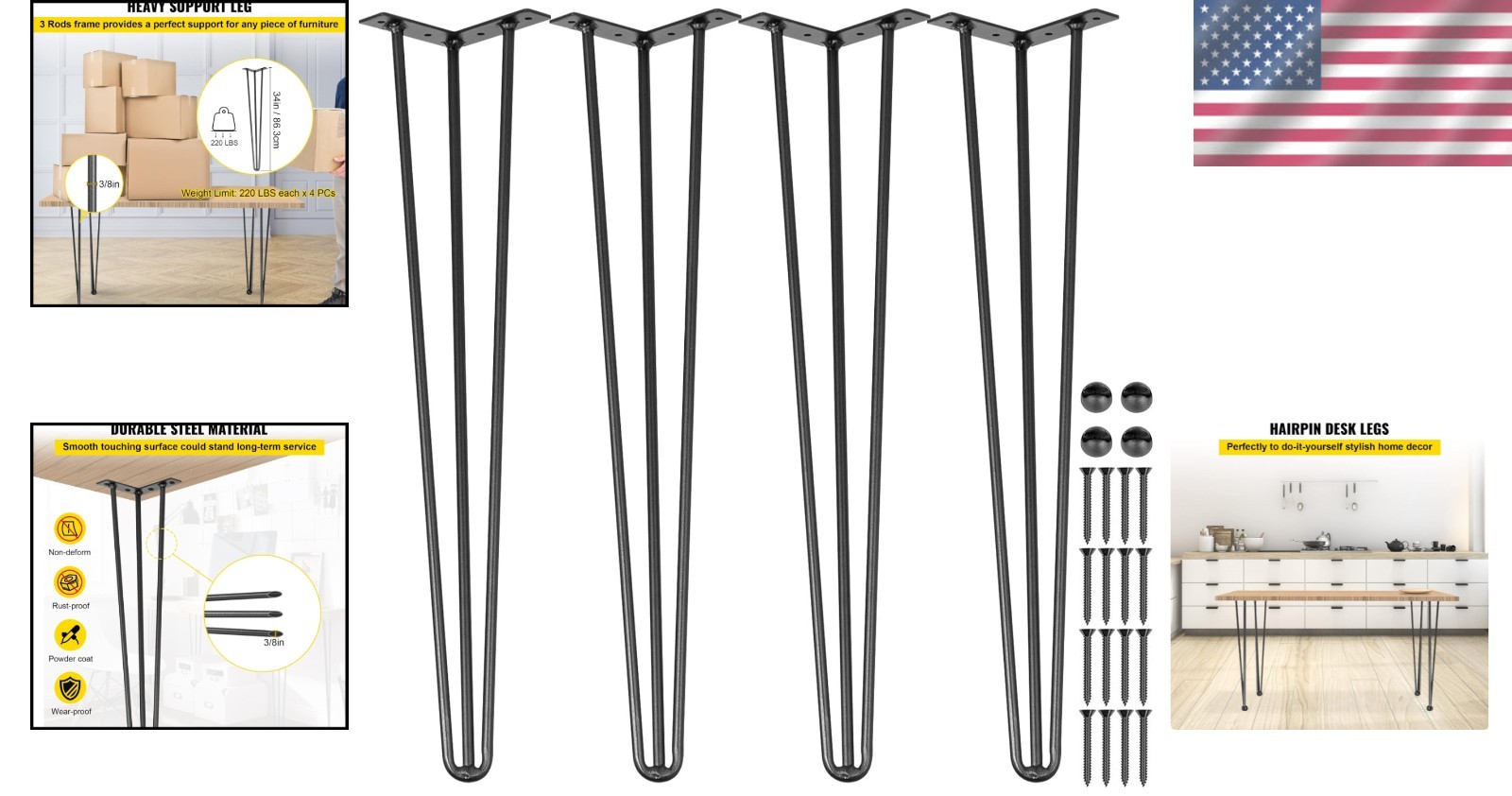 Included Components: 4 X Hairpin Table Legs
