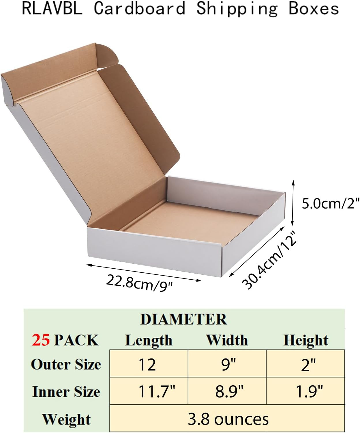 12X9X2 Shipping Boxes Set of 25, White Corrugated Cardboard Box for Packing, Mai