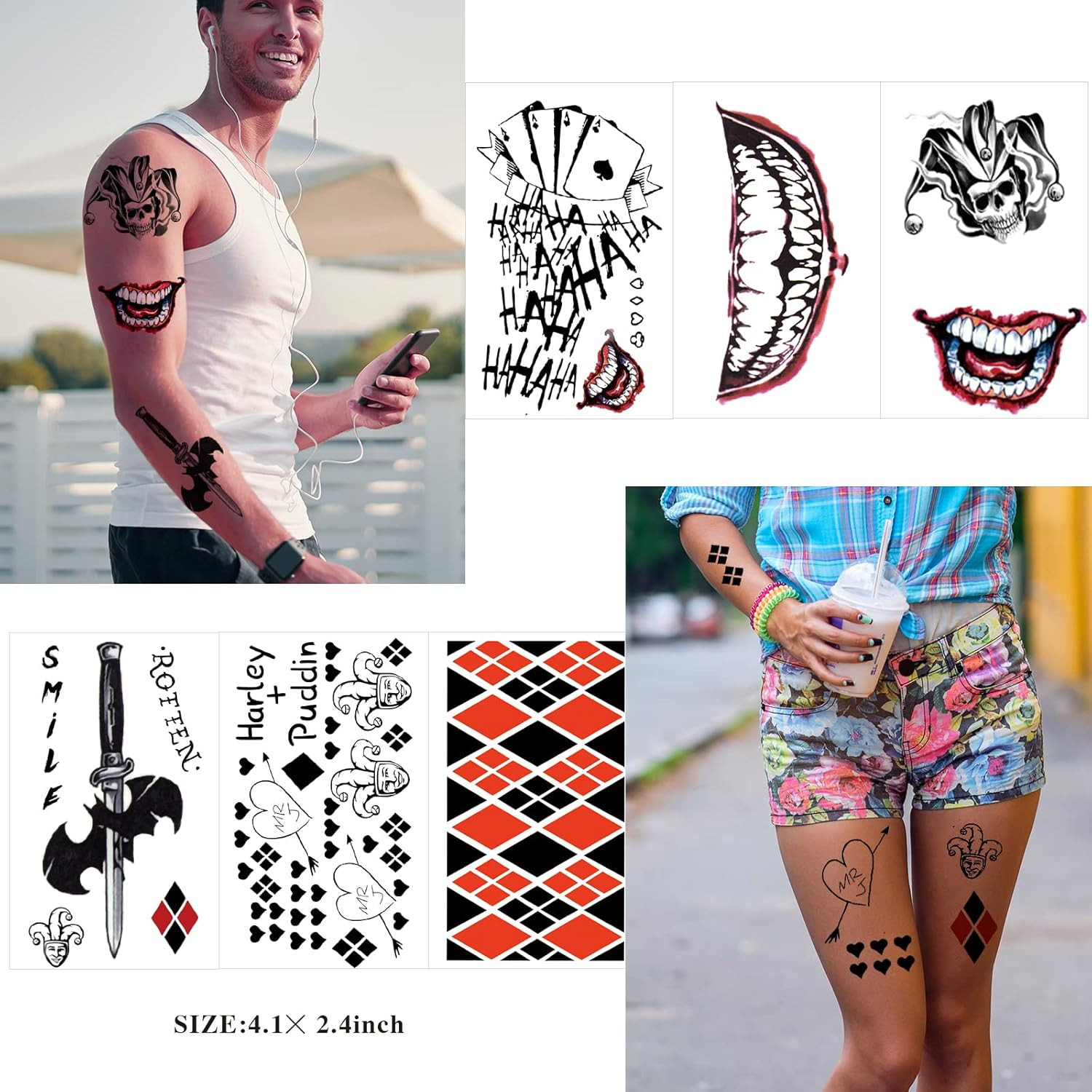 22 Sheets Halloween Temporary Tattoos, Perfect Halloween Joker Face Tattoos for