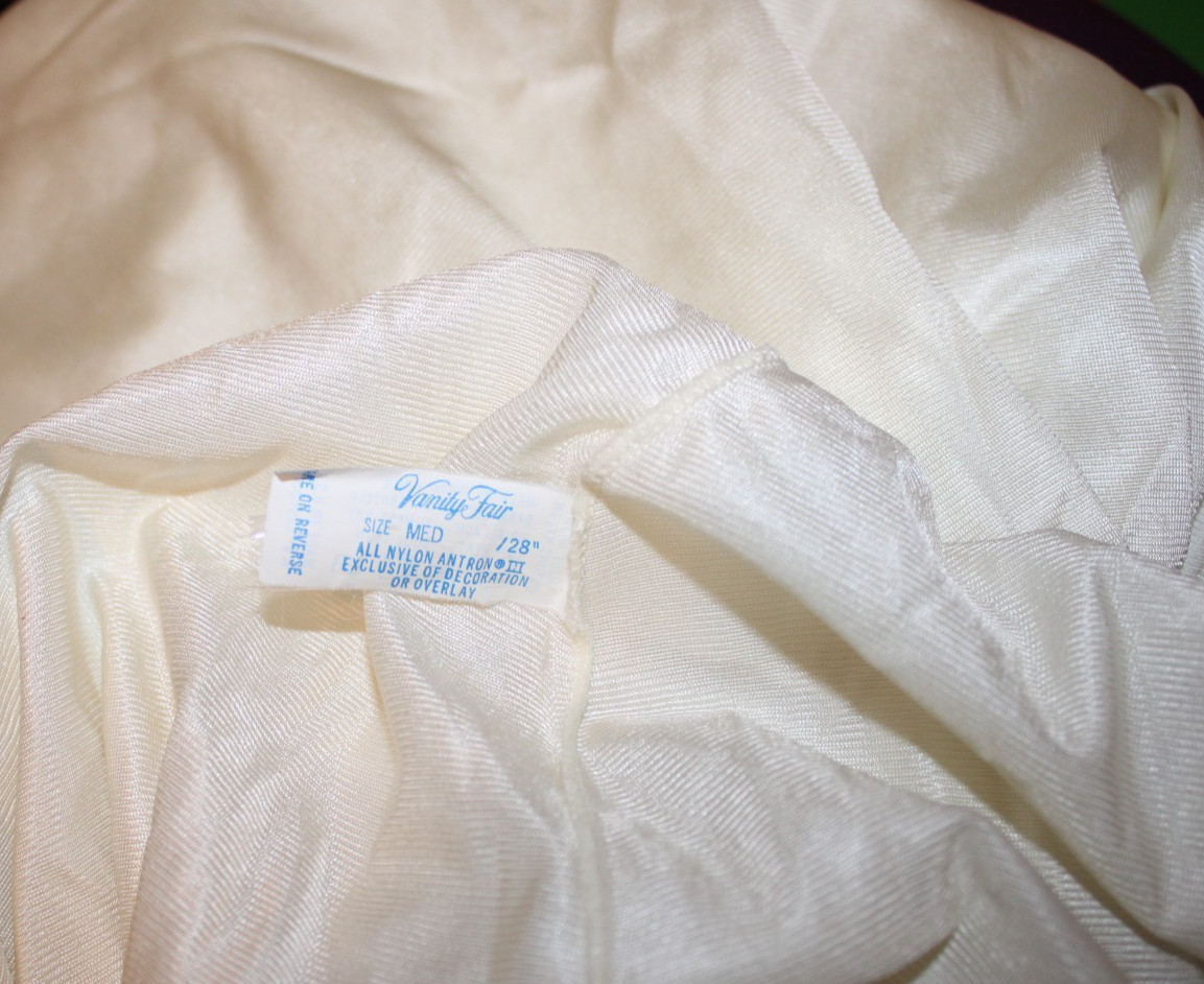 как выглядит Vanity Fair Off White Nylon Antron Half Slip M Vintage Script Lettering 28 Inch фото