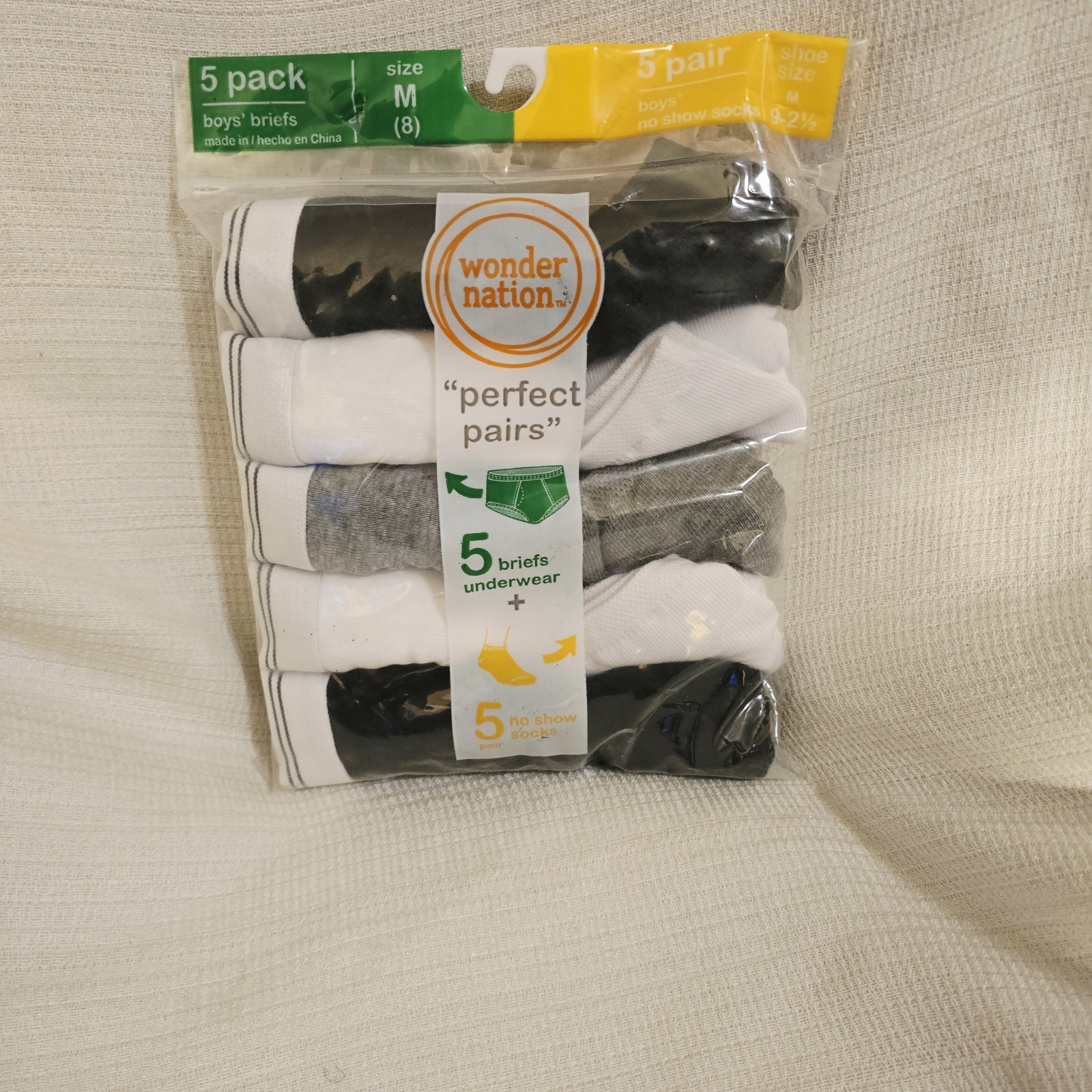 Wonder Nation Boys 5 pack Briefs Underwear Medium 5 Pair No Show Socks NEW