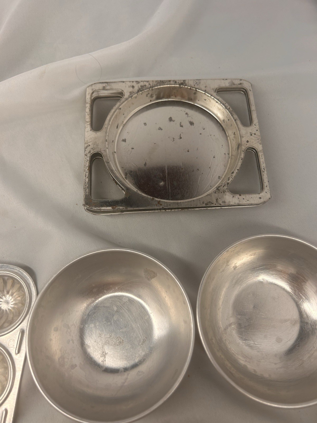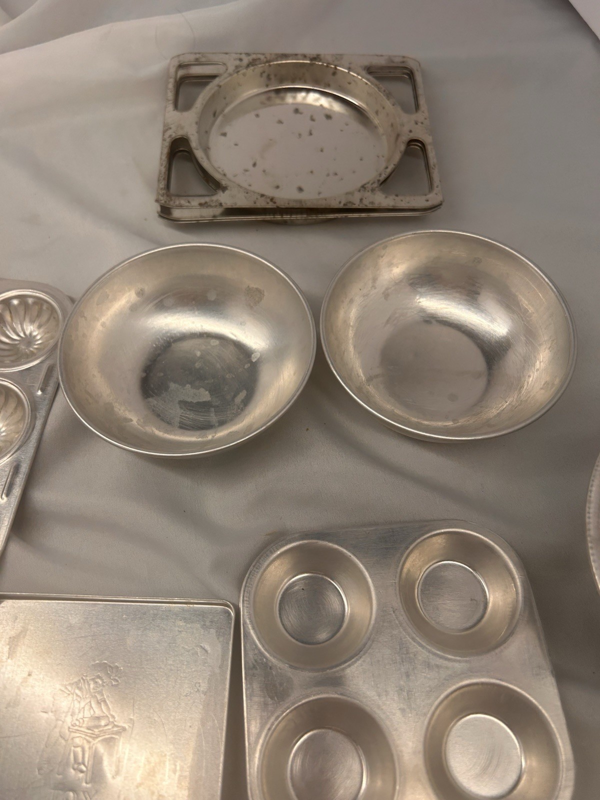 Vintage Retro Aluminum 1950's Child's Baking Set Cookware Making Cupcake