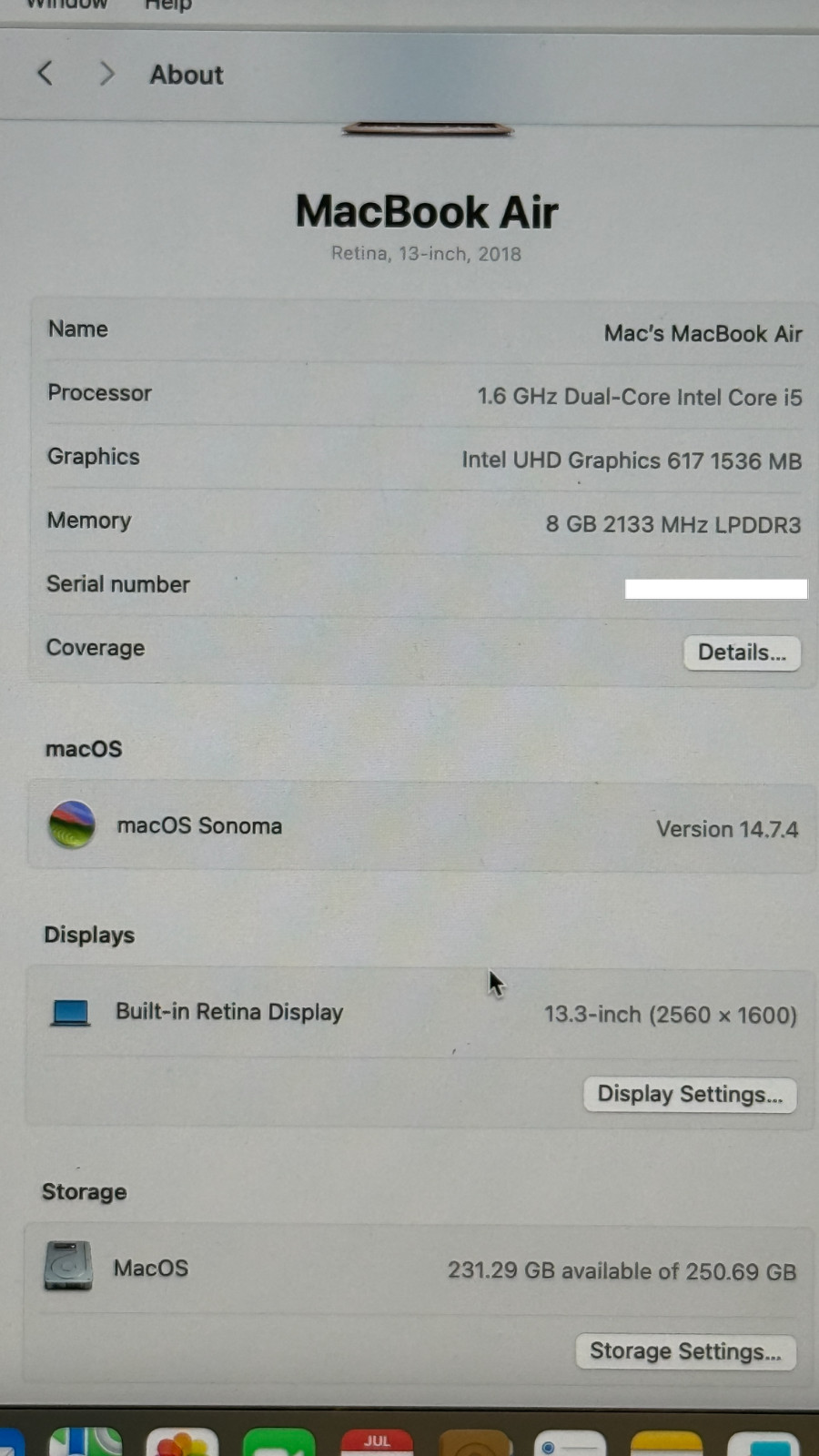 MacBook Air 13 1.6Ghz-i5 8GB 256GB Gold 2018 Model
