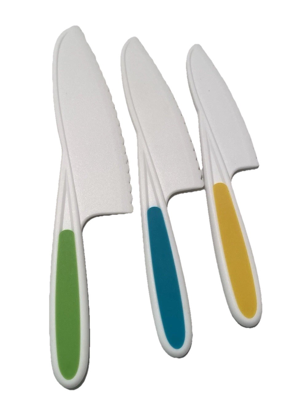 Kids Safe Nylon Knife Set 3pc Serrated Cooking Baking Soft Grip Child Safe