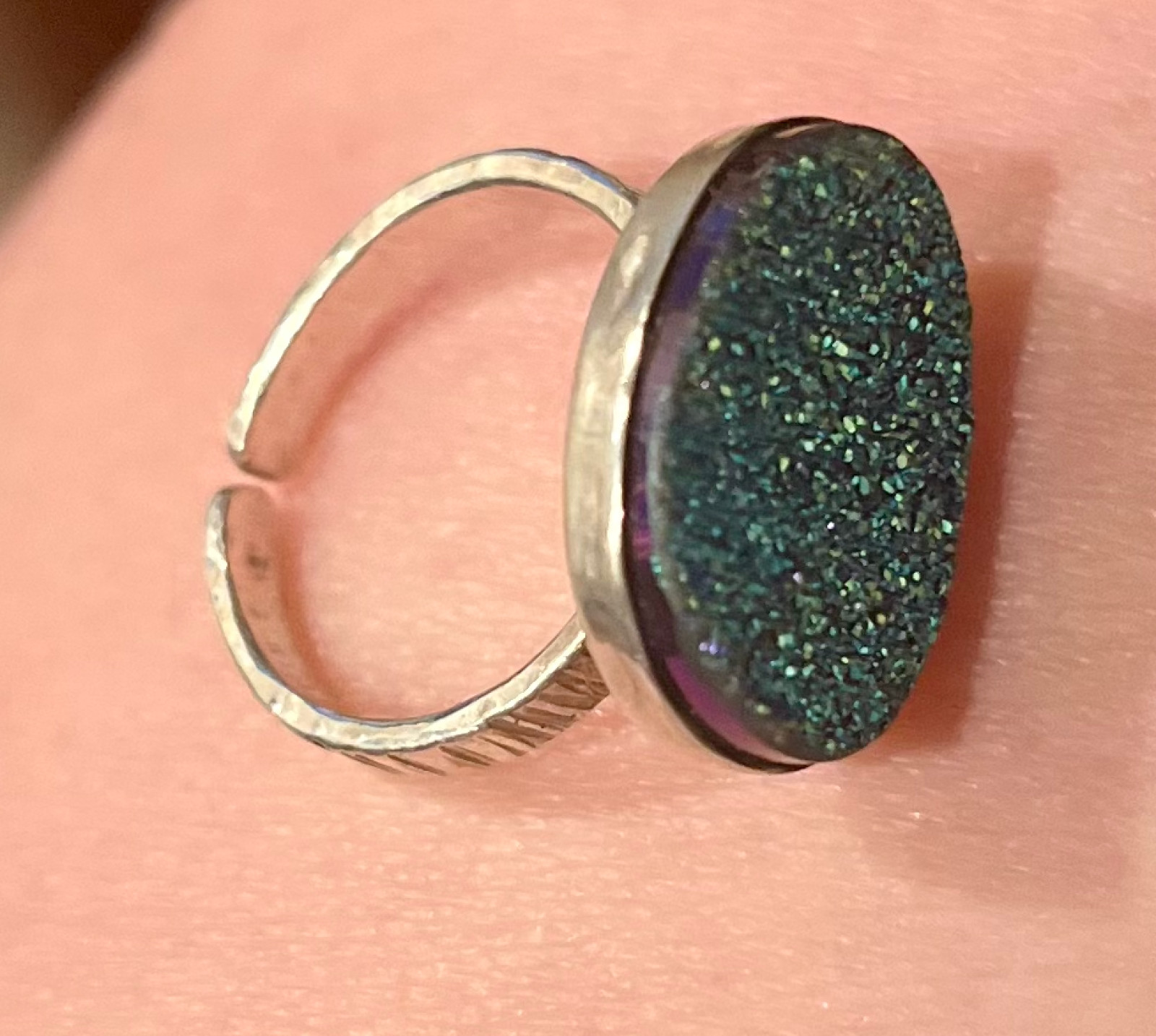 Sterling Silver Adjustable Blue Druzy Quartz Ring, pre-owned, never worn, good