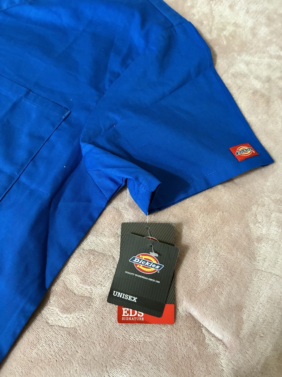 как выглядит NWT Dickies Scrubs V-Neck Solid Scrub Womens M Galaxy Blue EDS фото