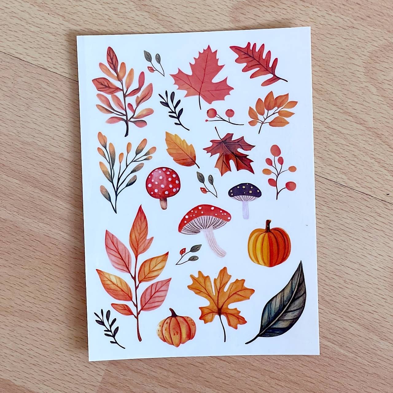 Temporary tattoo sheet Autumn Forest, Tiny Colorful Tattoos, Fall Leaves