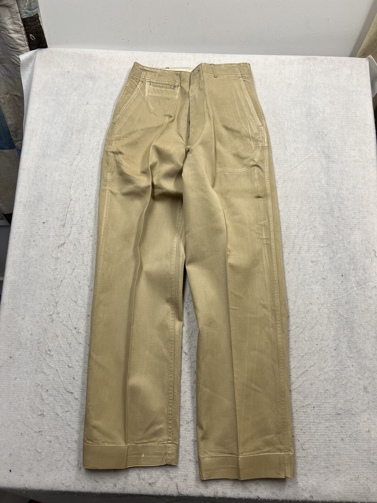 Button Fly Chino Khaki Pants 1940s WW2 Vintage Work Wear Mikitary Uniform 29 32