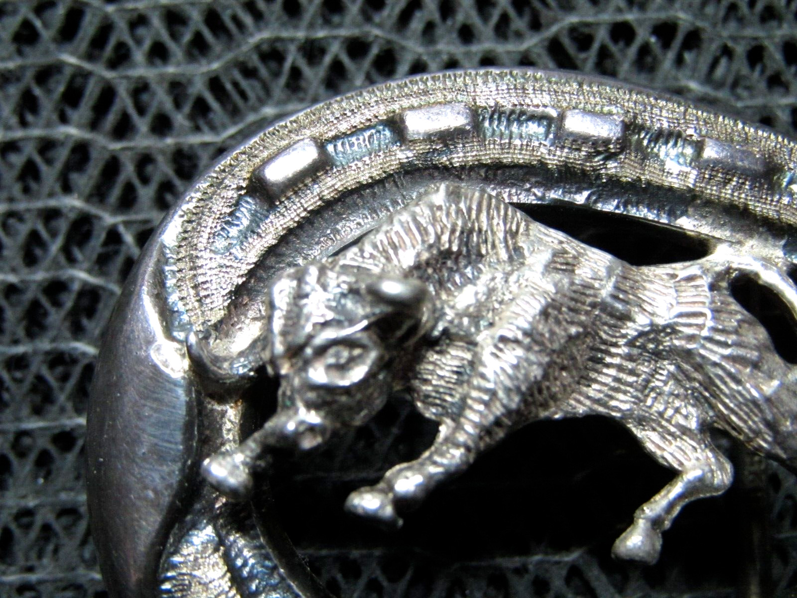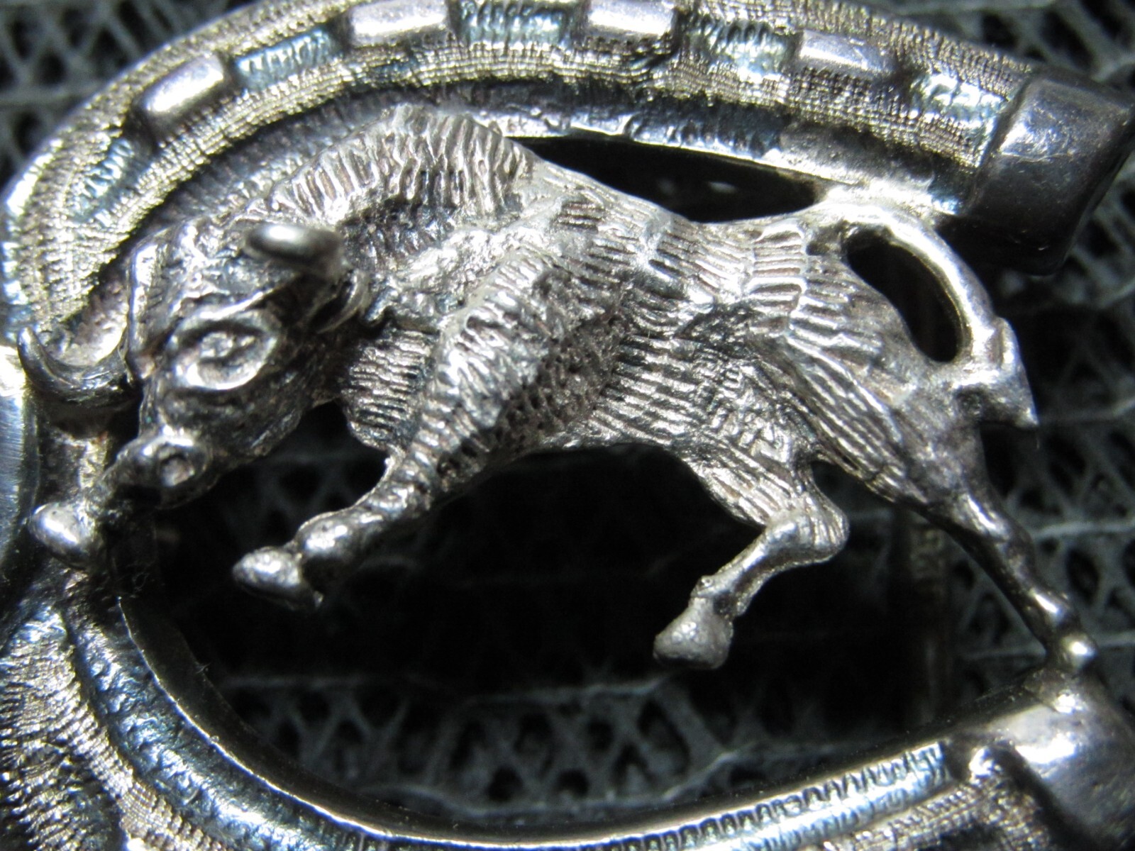 SMALL STERLING SILVER CHARGING BULL HORSESHOE BELT BUCKLE VINTAGE HANDMADE 18g