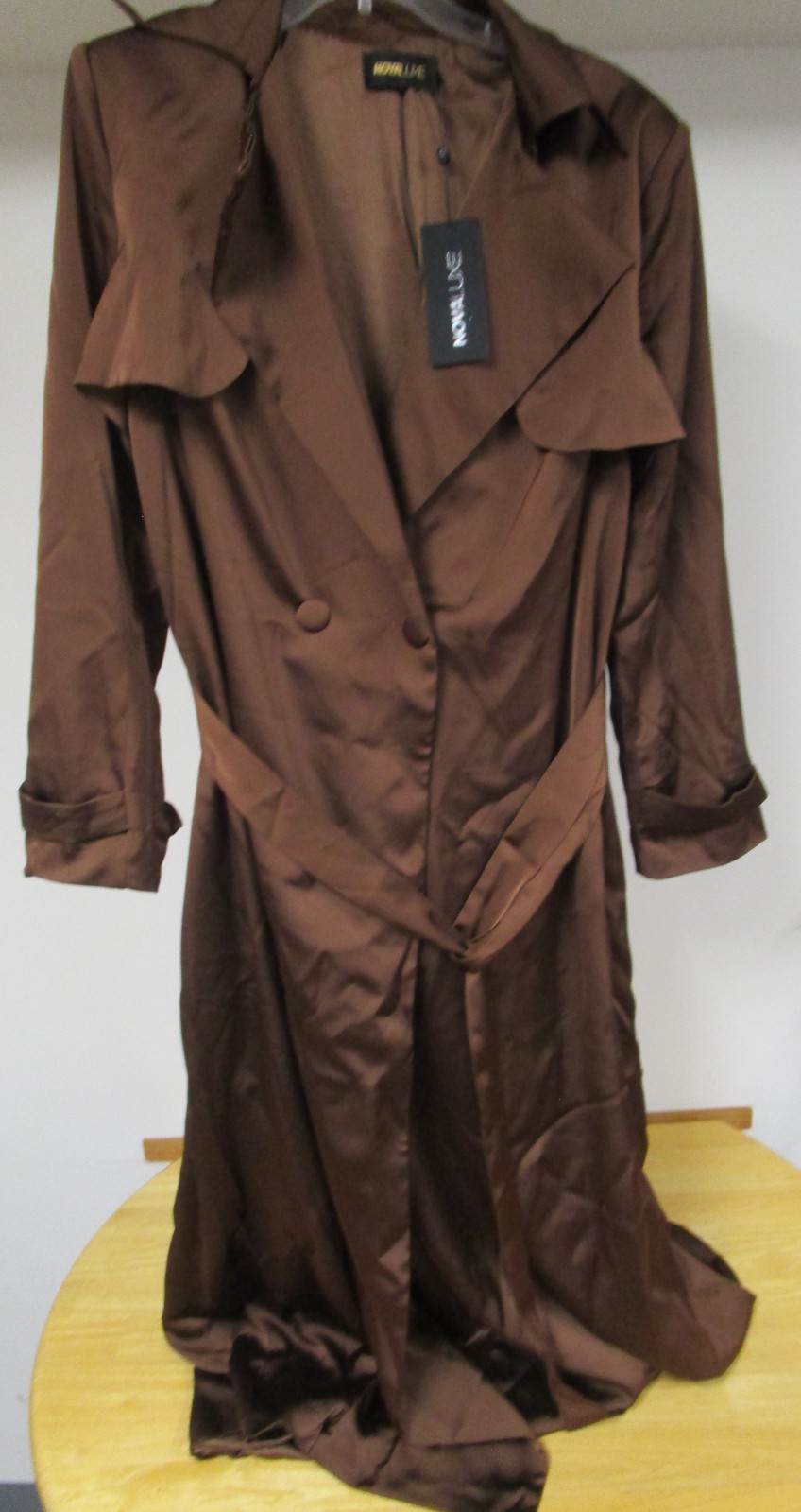 Fashion Nova Luxe Gabriella Satin Trench Coat Chocolate Brown Pant Suit Size 3X