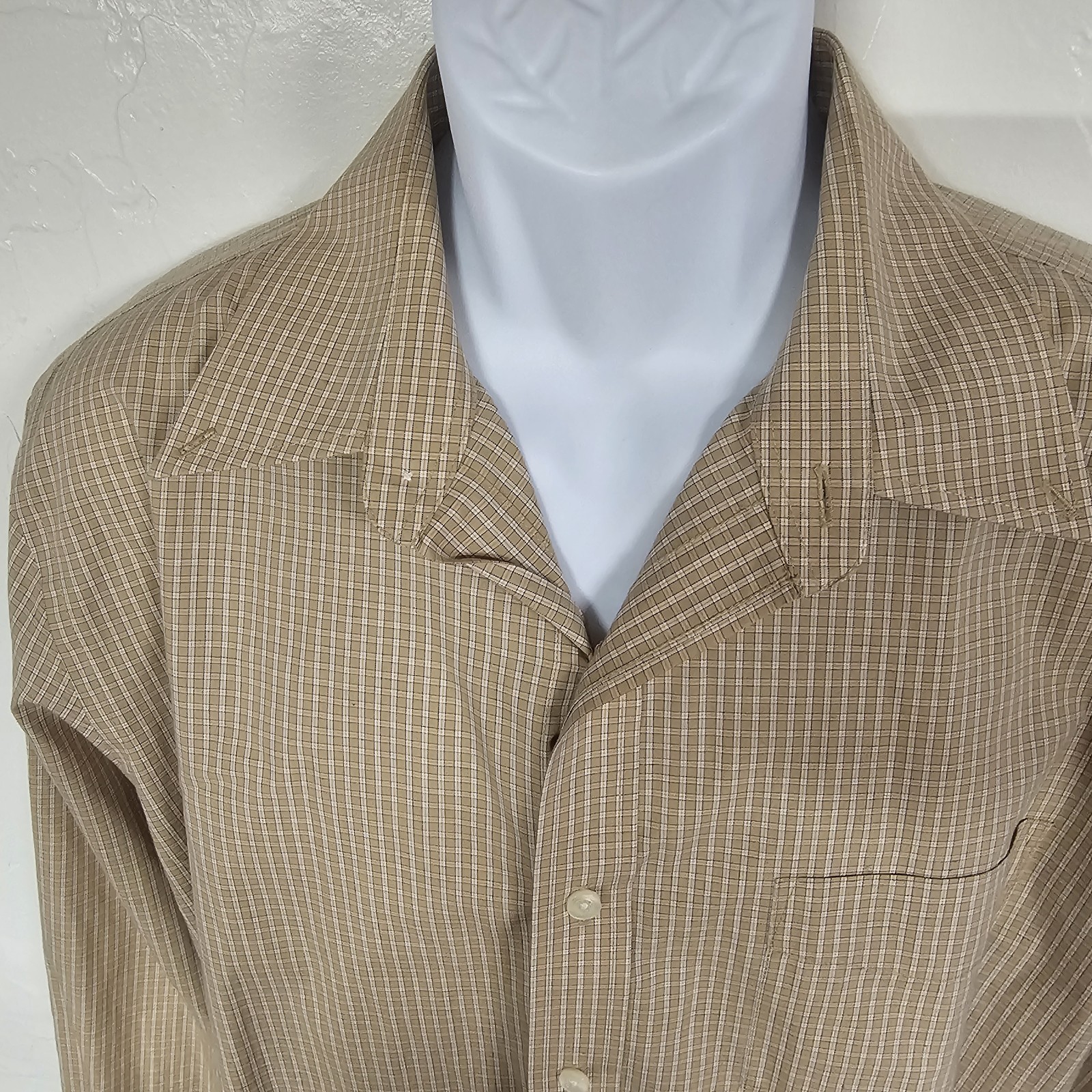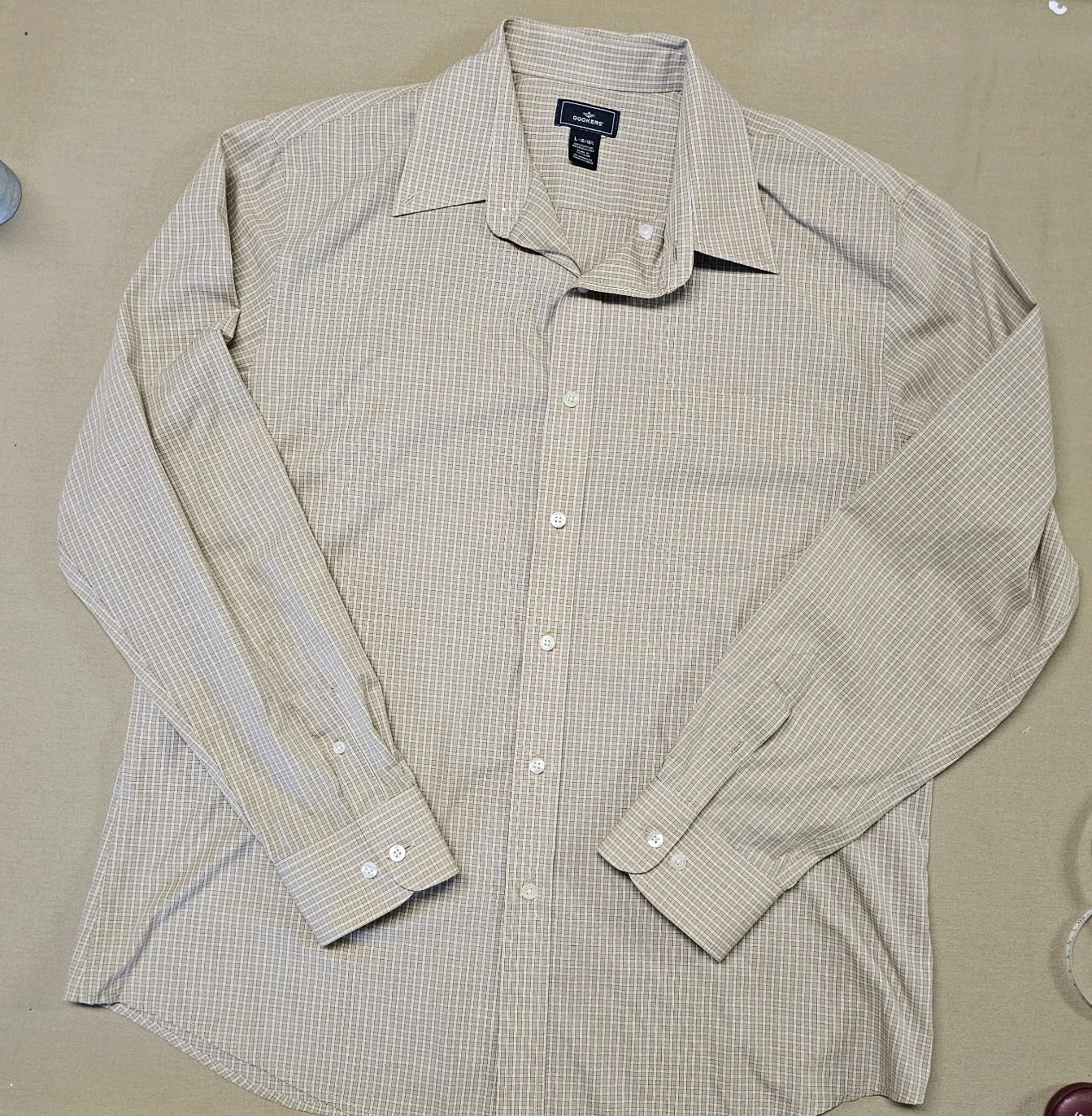 Dockers Dress Shirt Men s L Plaid Button Down Long Sleeve Beige Formal Read
