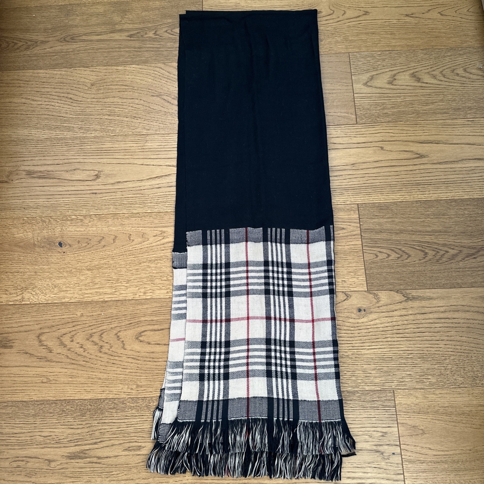 как выглядит Scarf, Unbranded New Wool, Plaid and Black, With Fringe -Made In India фото