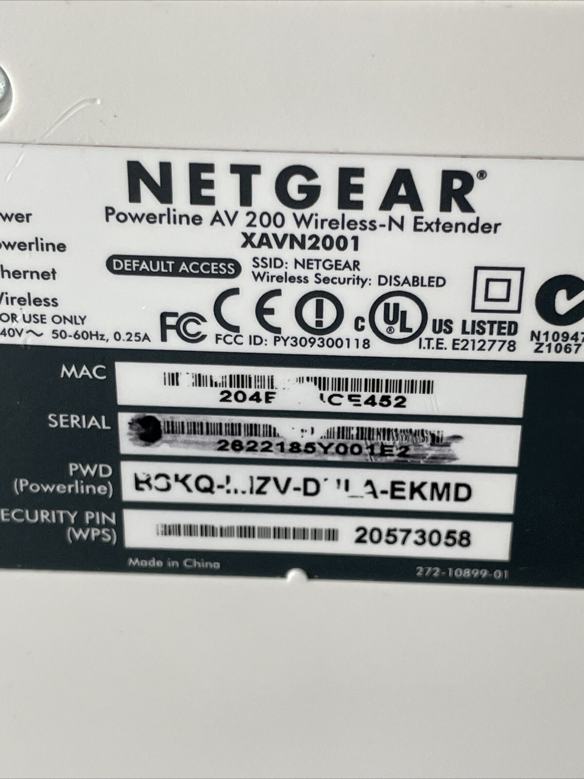 Netgear Powerline AV 200 Wireless-N Extender XAVN2001