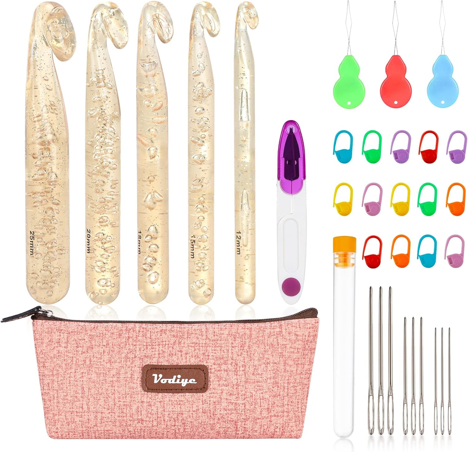 как выглядит 5 Sizes Large Crochet Hooks 12mm 25mm Ergonomic Transparent Hook Set фото