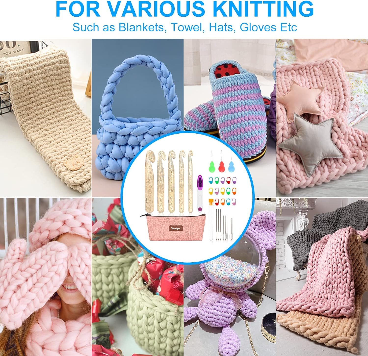 Special Feature: Large sizes for chunky yarns, ergonomic handles, deep hooks, comp