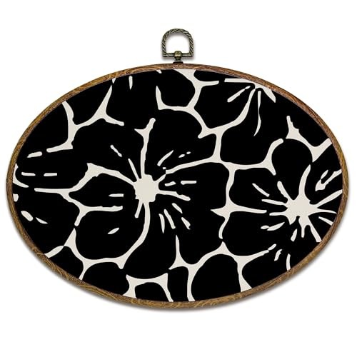 kdqua Boho Abstract Floral Oval Wall Art Decor, Boho Black Floral Canvas