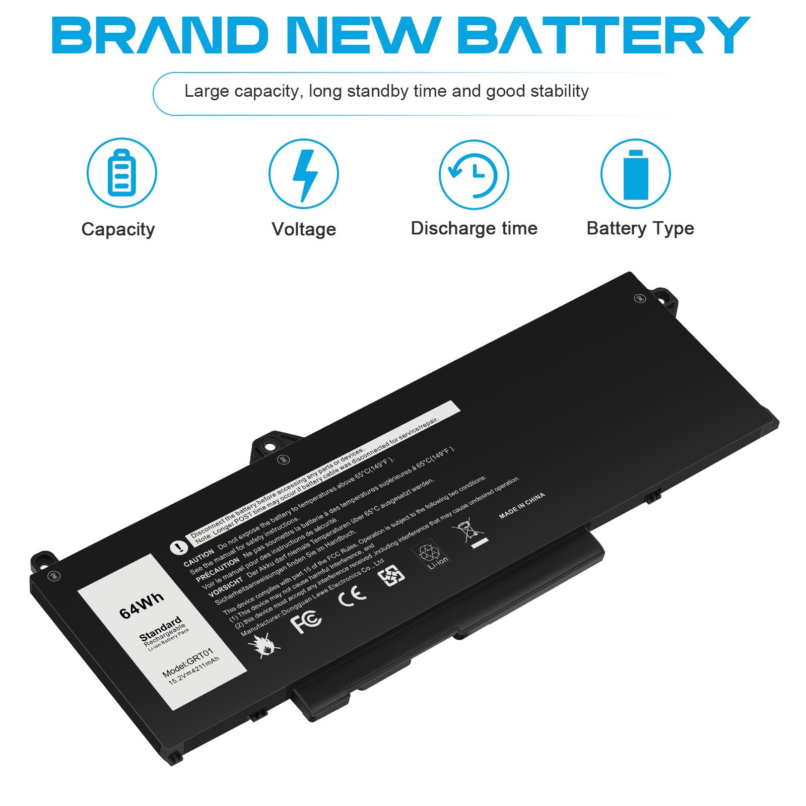 64Wh GRT01 Battery Replacement for Dell Latitude 15 5521 5531 14 5421 5431 05RGW