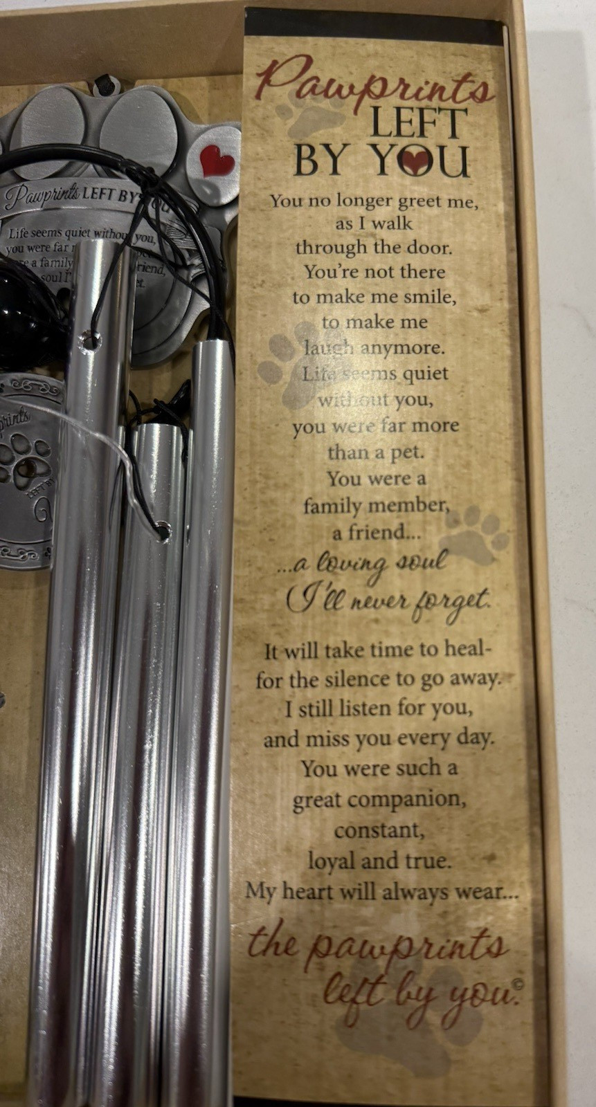 Pawprints Pet Memorial Wind Chime 18 Metal Remembrance Gift with Poem Card NIB