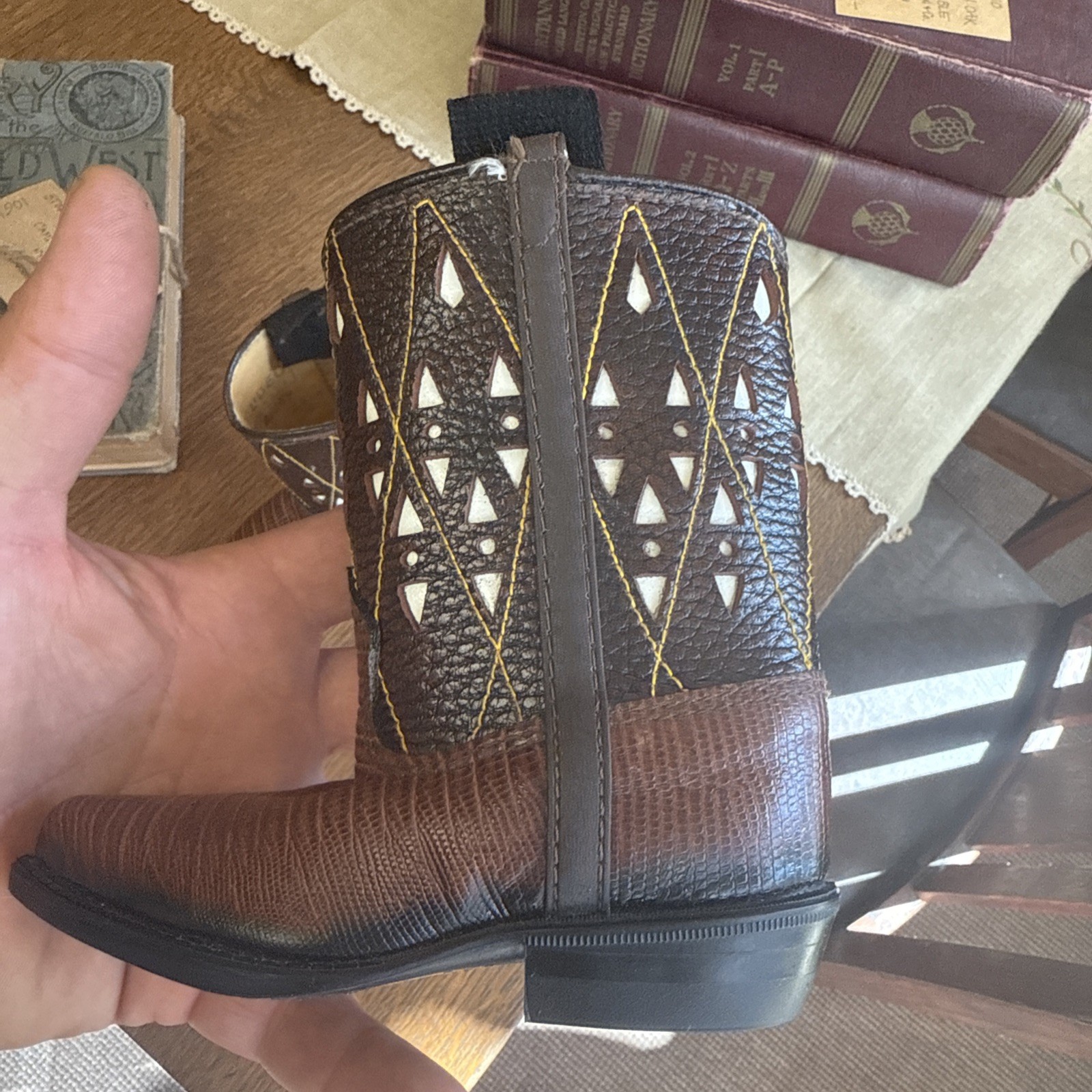 как выглядит Vintage KIDS 4D 1960s Rodeo Brand Boots cowboy Inlay Cut Out Leather фото