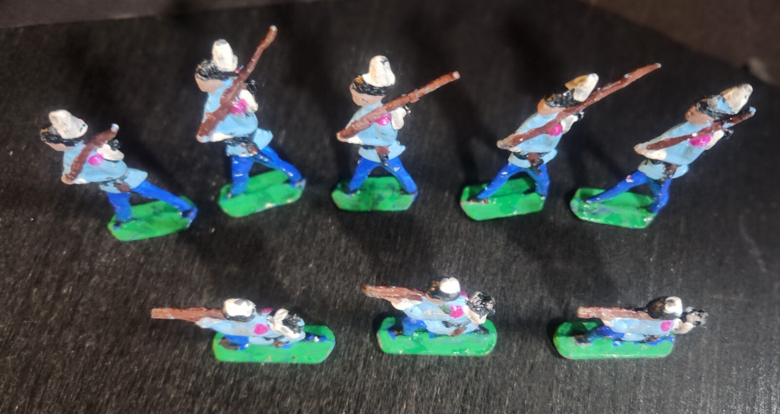 LEAD SEMI-FLAT SOLDIERS VINTAGE COLLECTION OF 8 INFANTRY WITH RIFLES 55mm